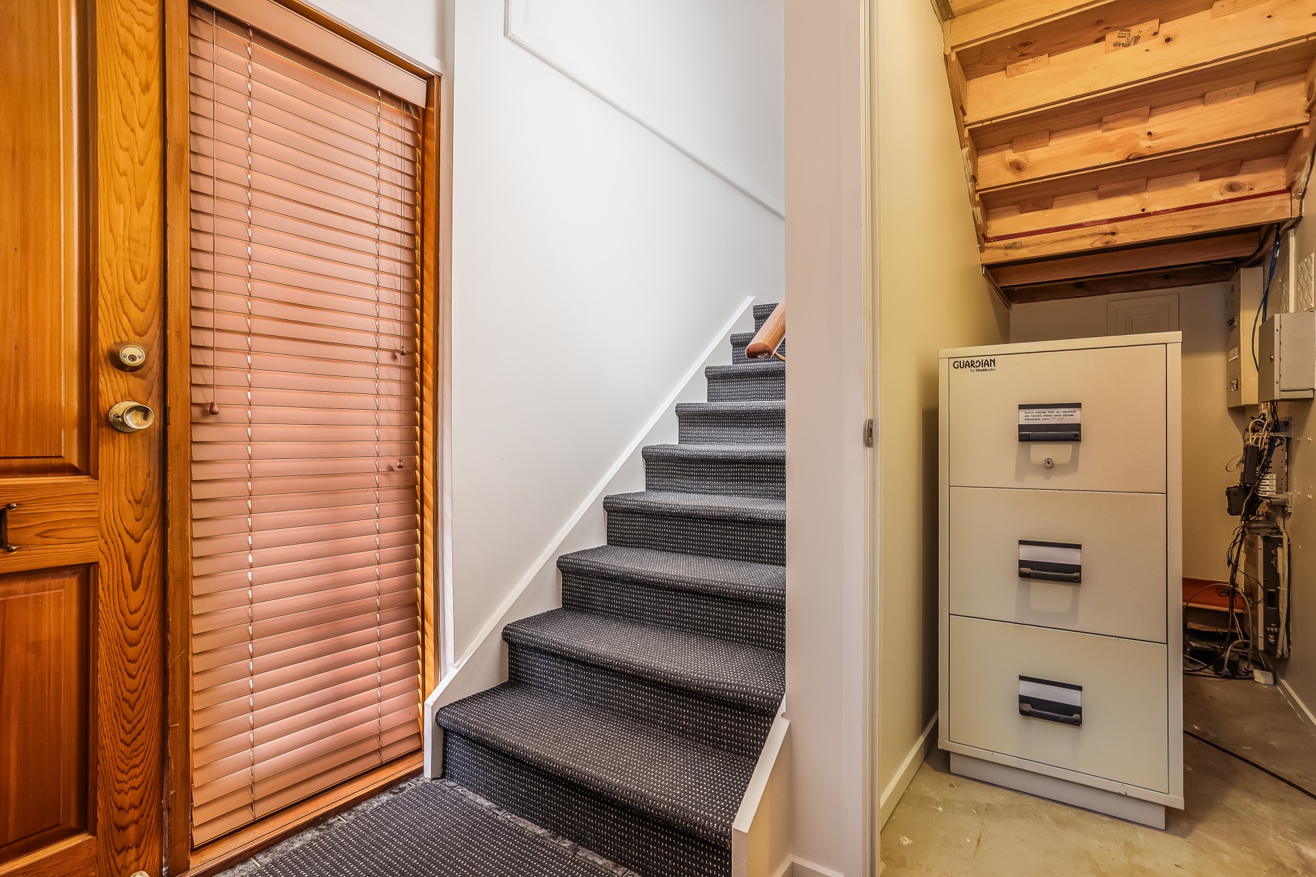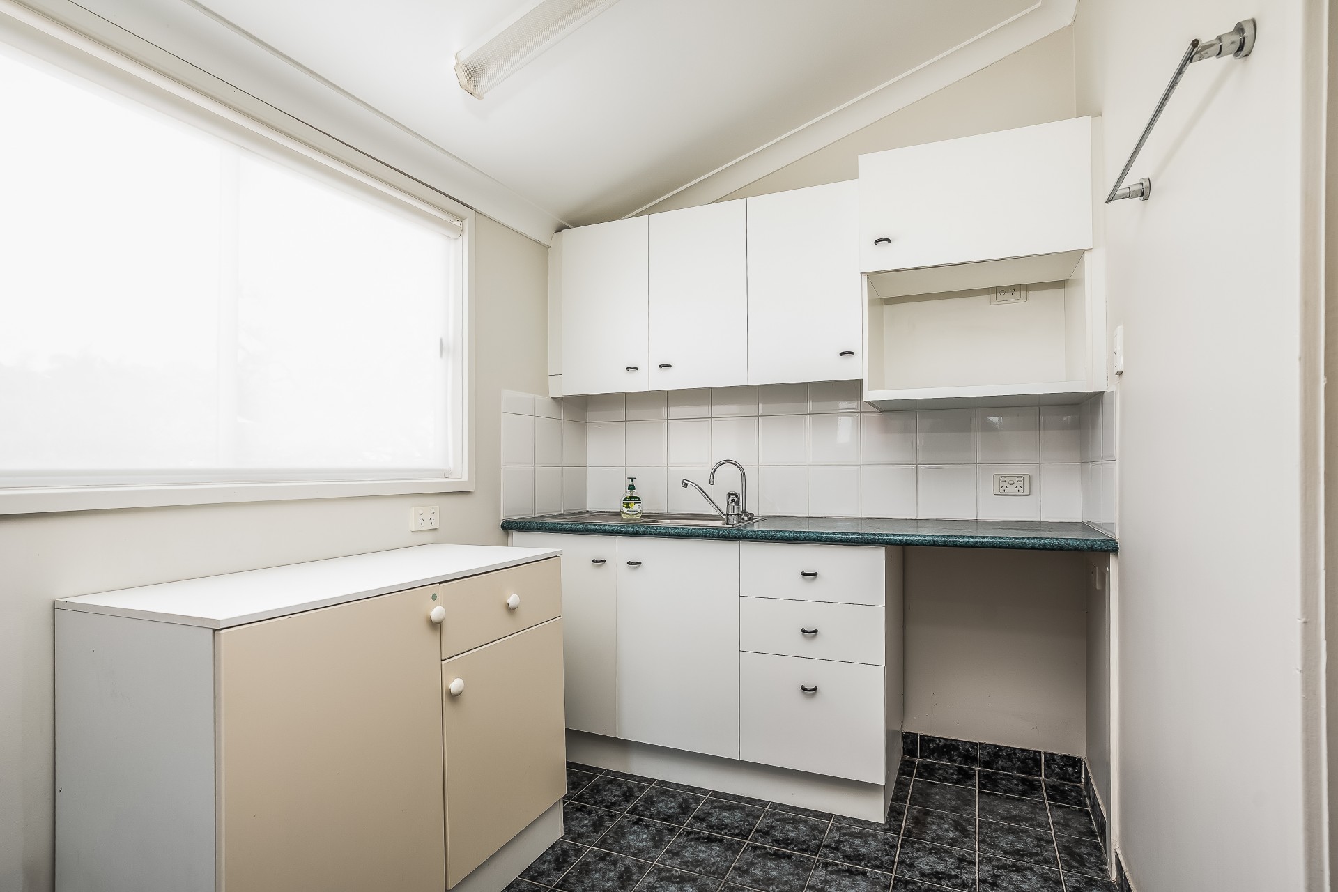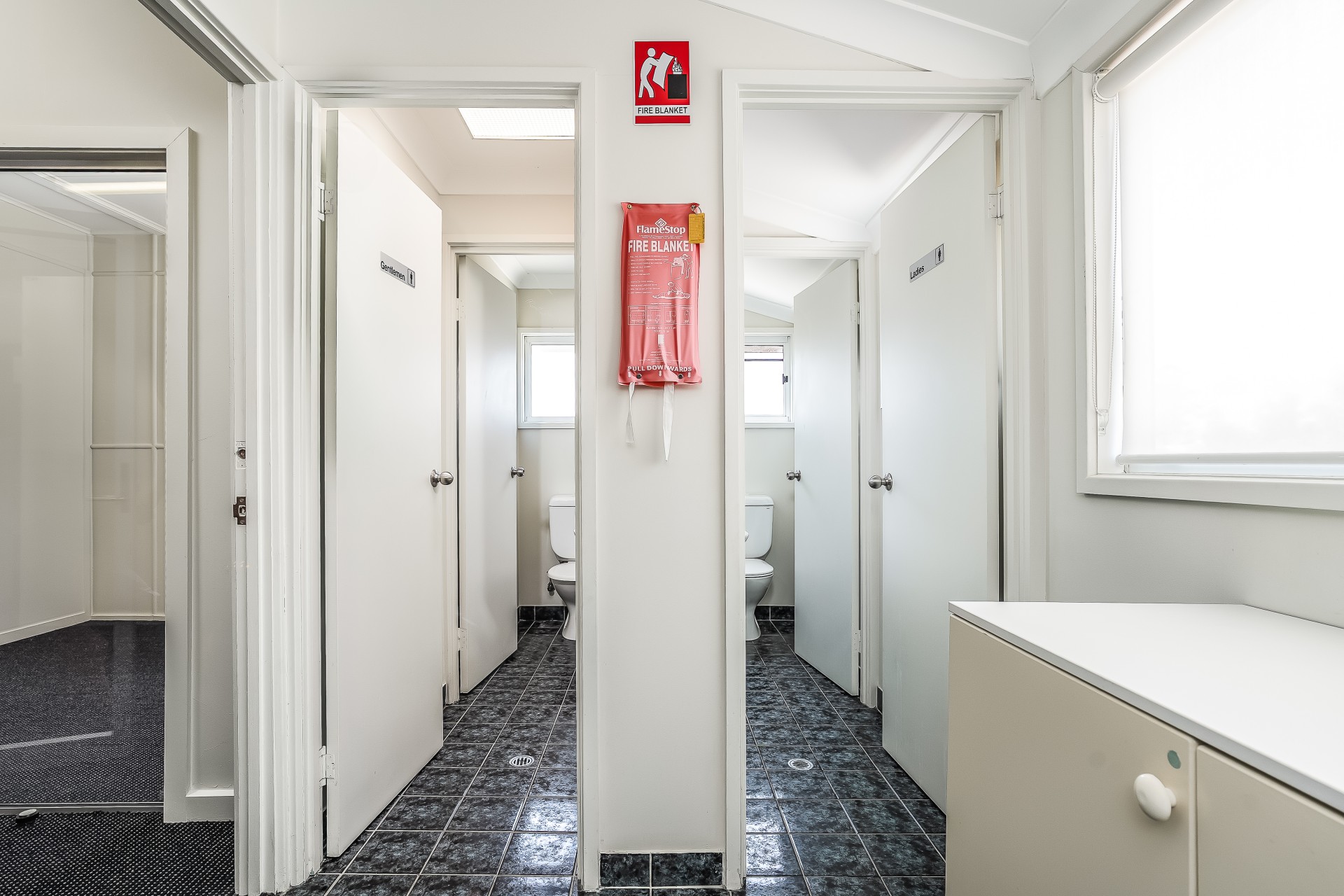 Upon entering, you are greeted by a versatile space that seamlessly transitions from a ground level entry and storage area to the main office space on the upper level. Unit 2 accommodates a downstairs entry and storage area, upstairs reception/waiting room, four carpeted offices, printer/filing room, meeting room, a well-appointed tiled kitchenette with stainless steel sink, separate male and female tiled toilets and storage space. Two air-conditioning units ensure year-round comfort, allowing you to focus on what truly matters.