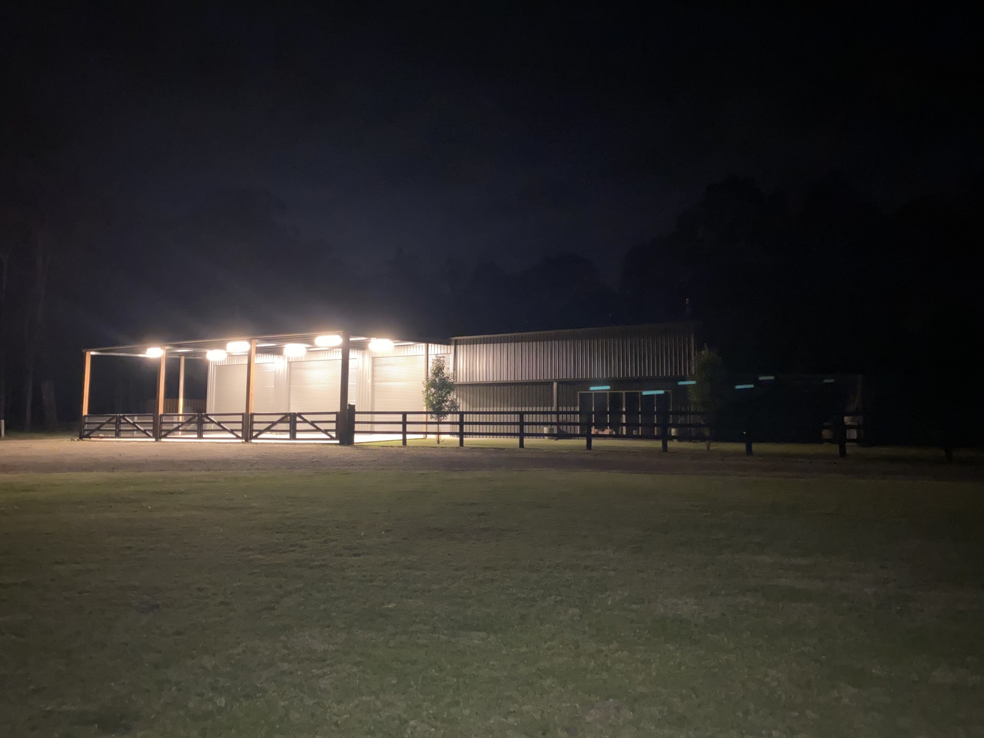 • 18 m × 18 m × 5 m high-clearance shed (approx. 324 m2) with drive-through access • 18 m × 6 m attached living / office area (2-3 rooms, kitchen, bathroom, A/C)