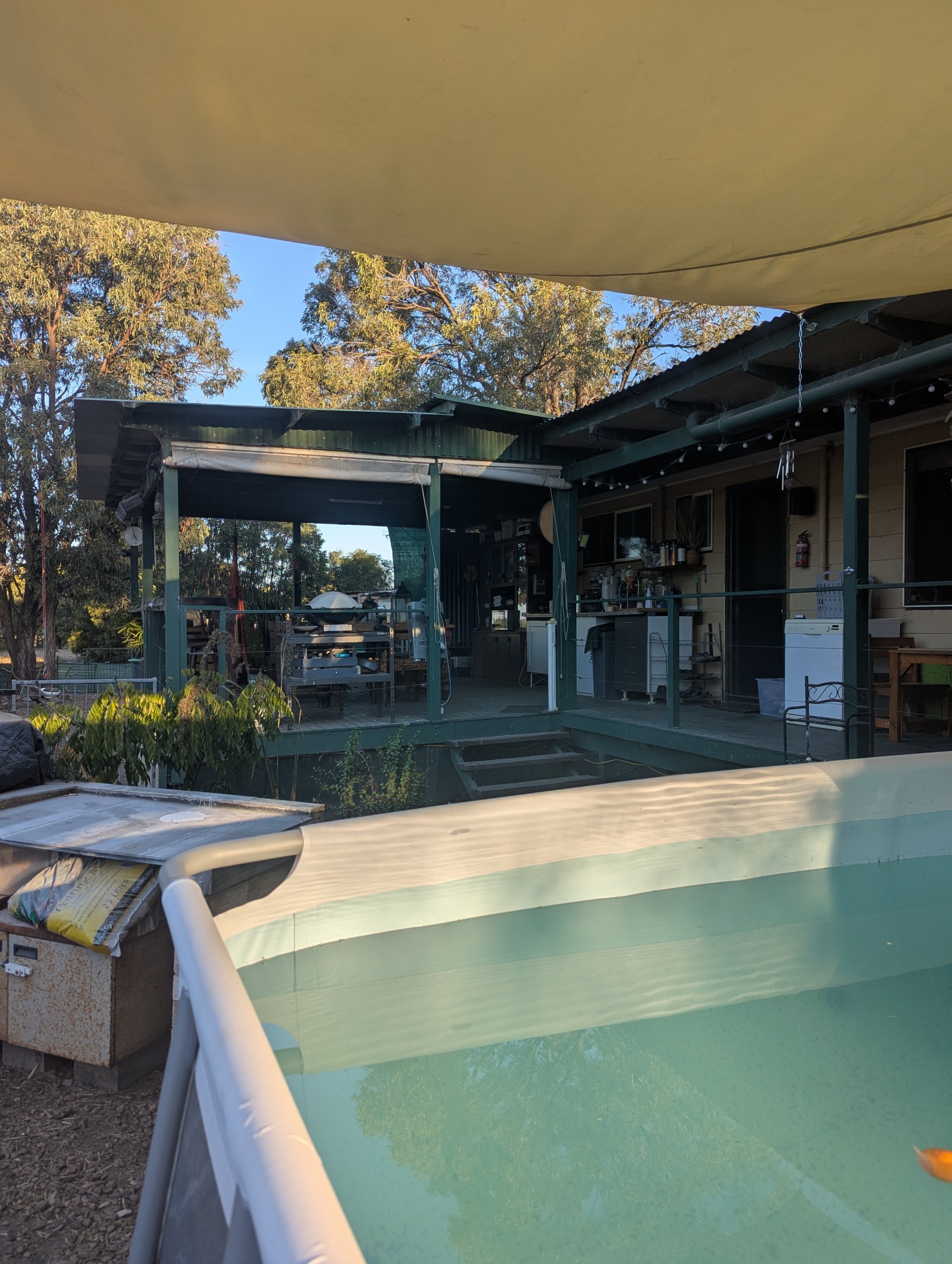 Our home sits on 3 acres, where we're working towards being self-sufficient with veggie gardens, rainwater tanks, and a variety of animals.