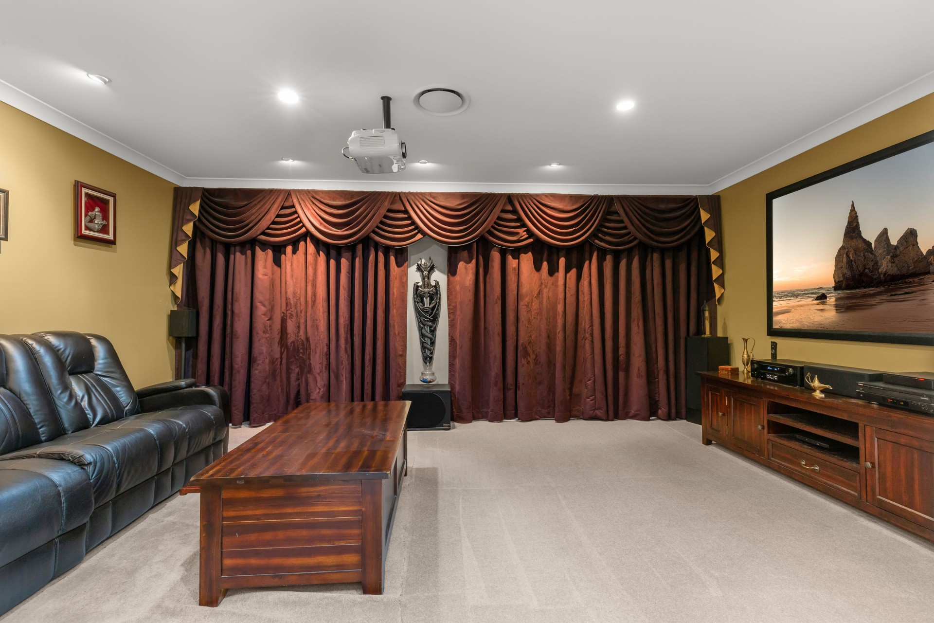 - Incredible home theatre with high quality projector, surround sound, 5 stack CD player and DVD player.