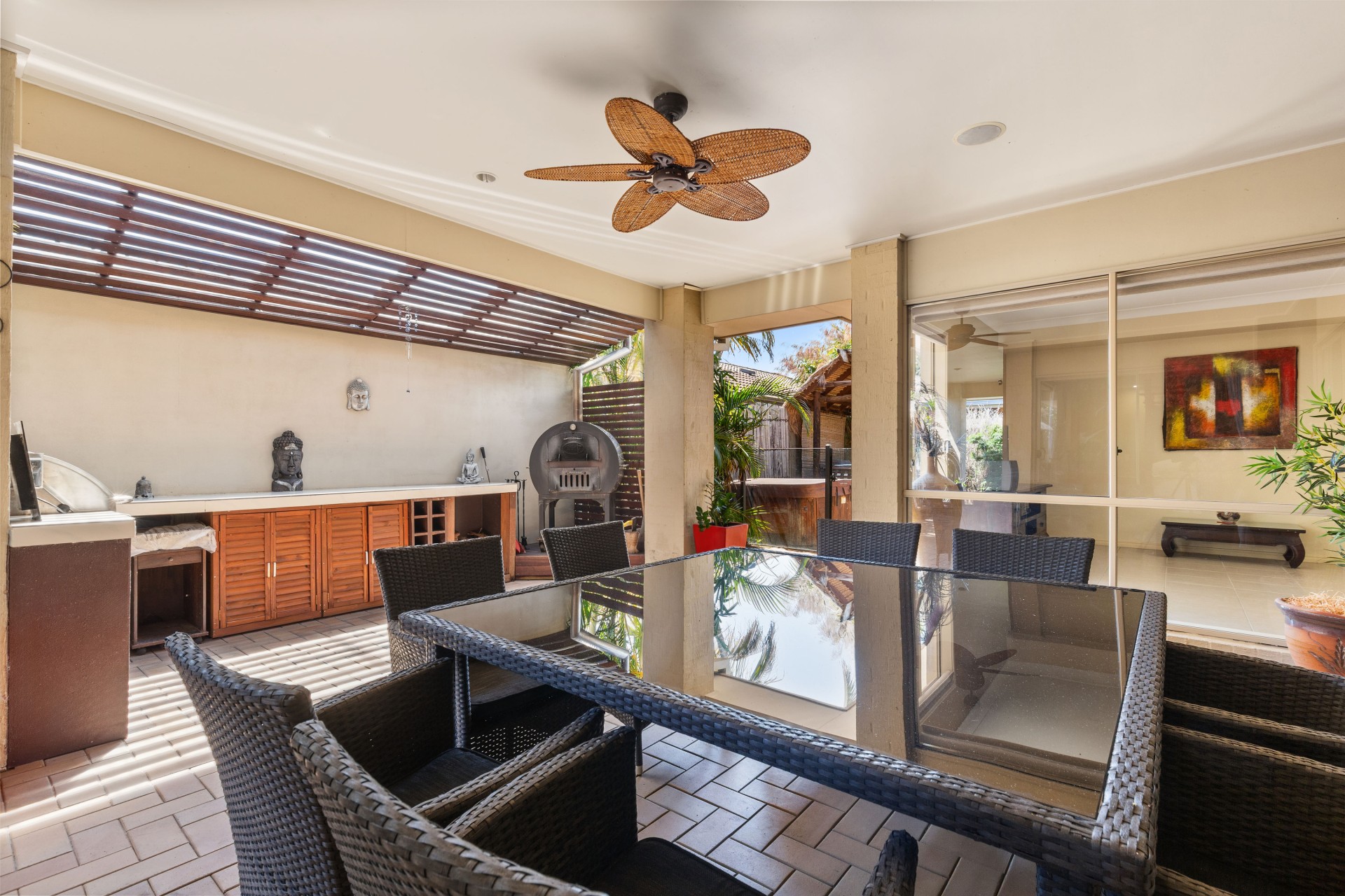 - Open-plan living flowing to a gorgeous alfresco area with built in barbeque and pizza oven