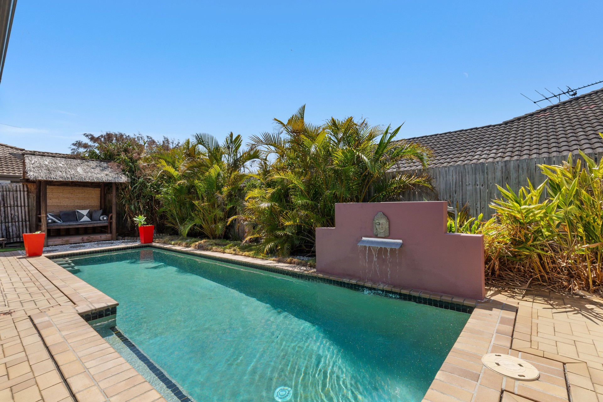 - Balinese-themed in-ground lap pool - your private tropical escape, complete with a bali hut.