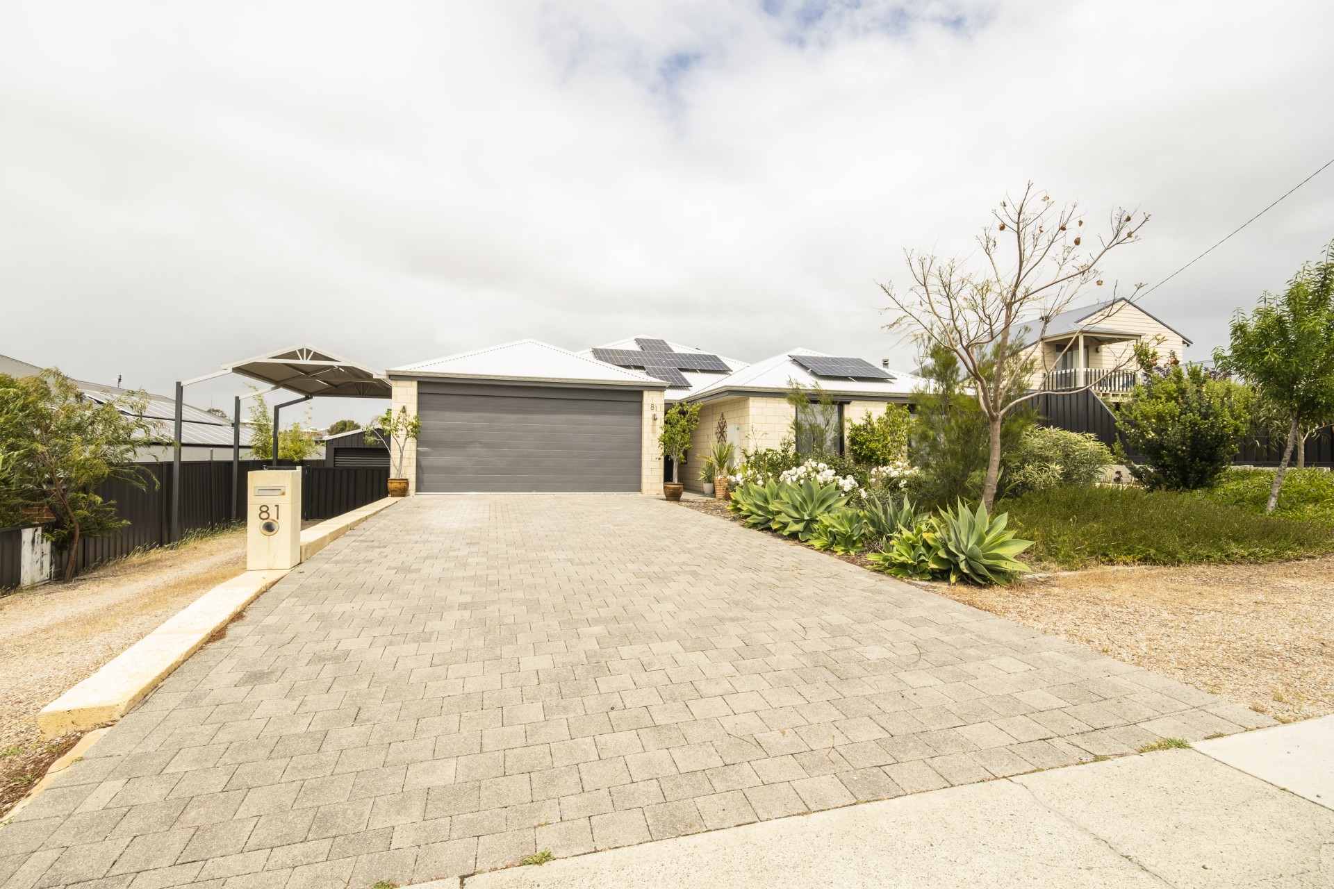 · Side access with covered parking for a caravan or boat and a shed for workshop or storage.