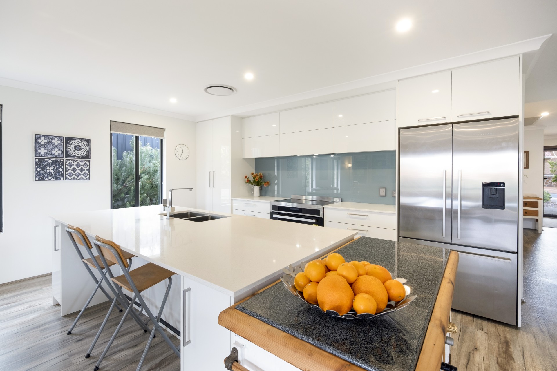 · Functional kitchen with 900mm induction cooktop, electric oven, dishwasher, stone benchtops, walk-in pantry, fridge plumbing and ample storage.