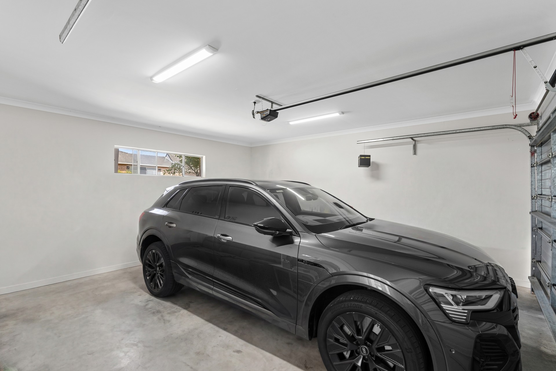 You drive into a double garage door with extra storage space. Enter to your very own private courtyard oasis wrap through to a beautiful lush green garden.