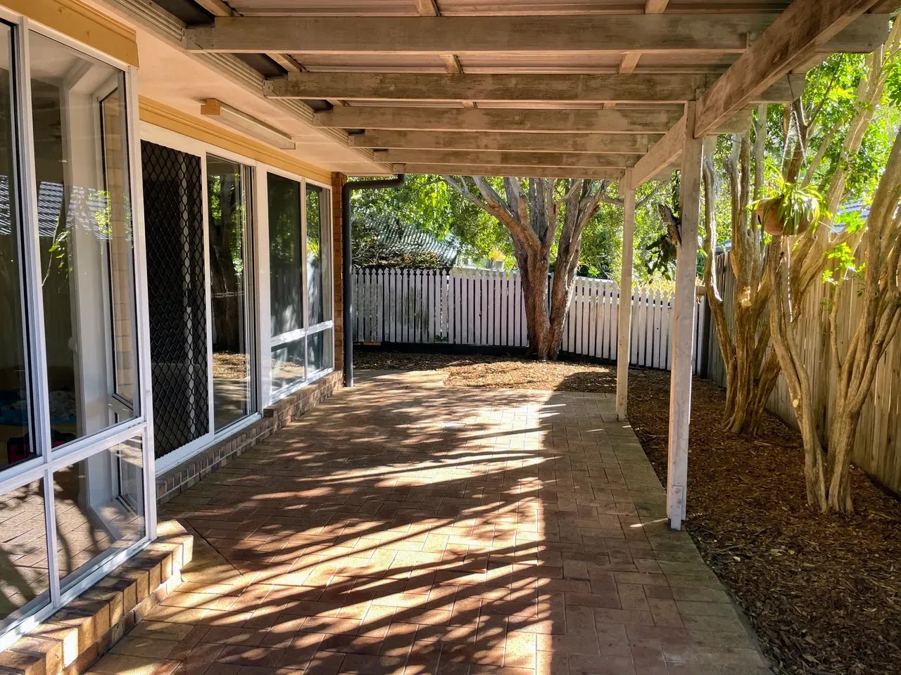 Outside leads to a large, covered entertaining area with a small garden. The property also offers a garden shed for all your storage needs.