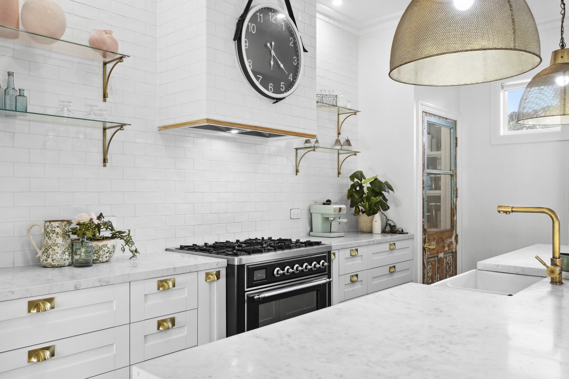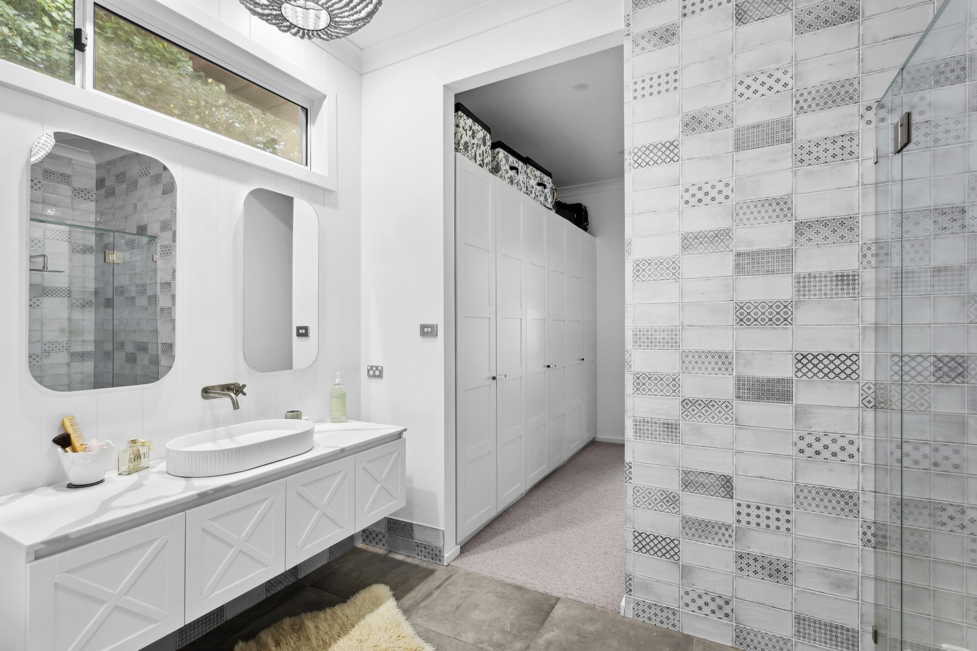 Three-meter ceilings, sash windows, elegant dark polished timber floors and decorative cornicing complete this pristine three-bedroom interior. Me-time can also be achieved in the serene front lounge while reading a book or relaxing with a glass of wine on the back deck, chatting with friends whilst overlooking nature.