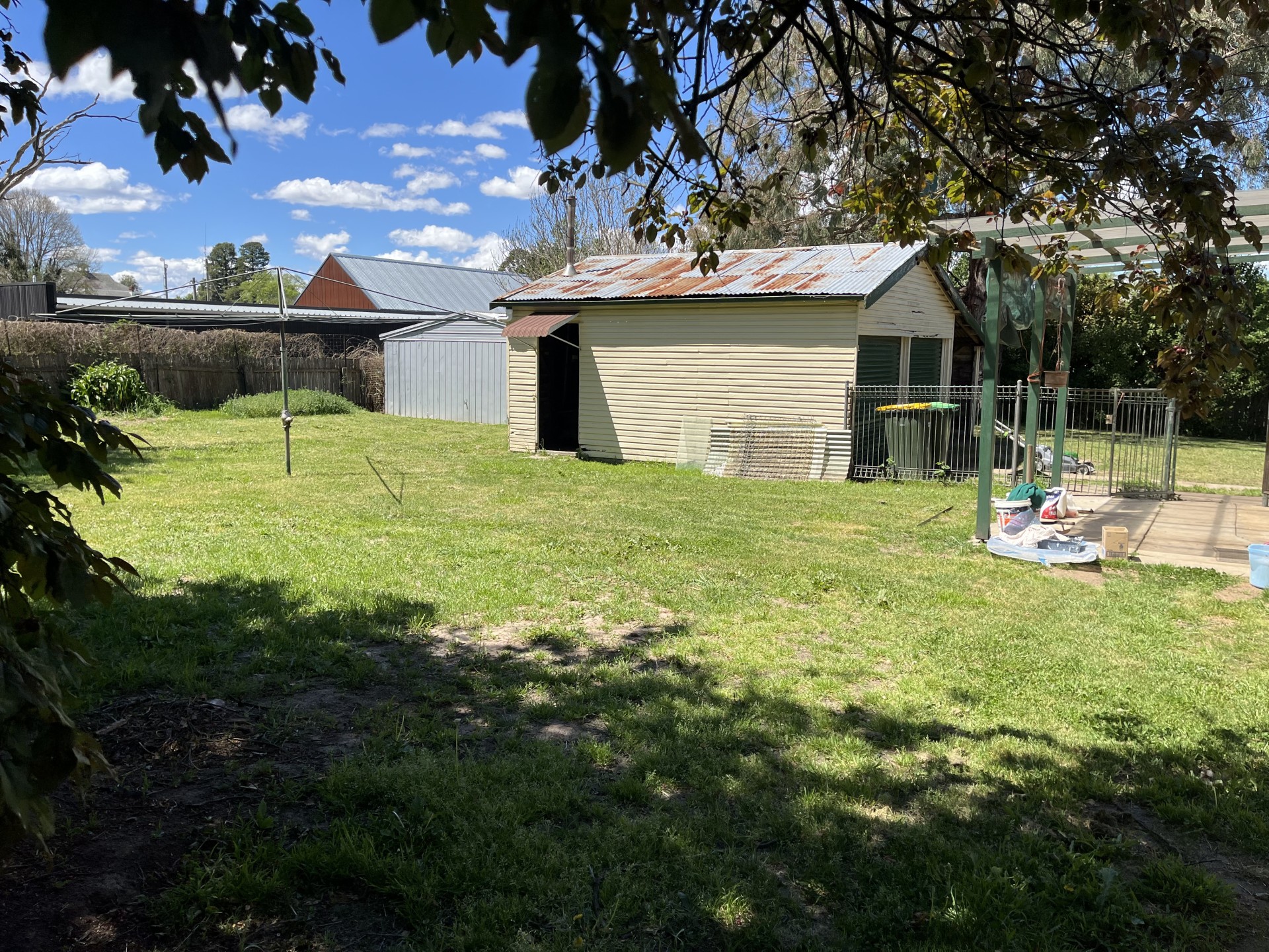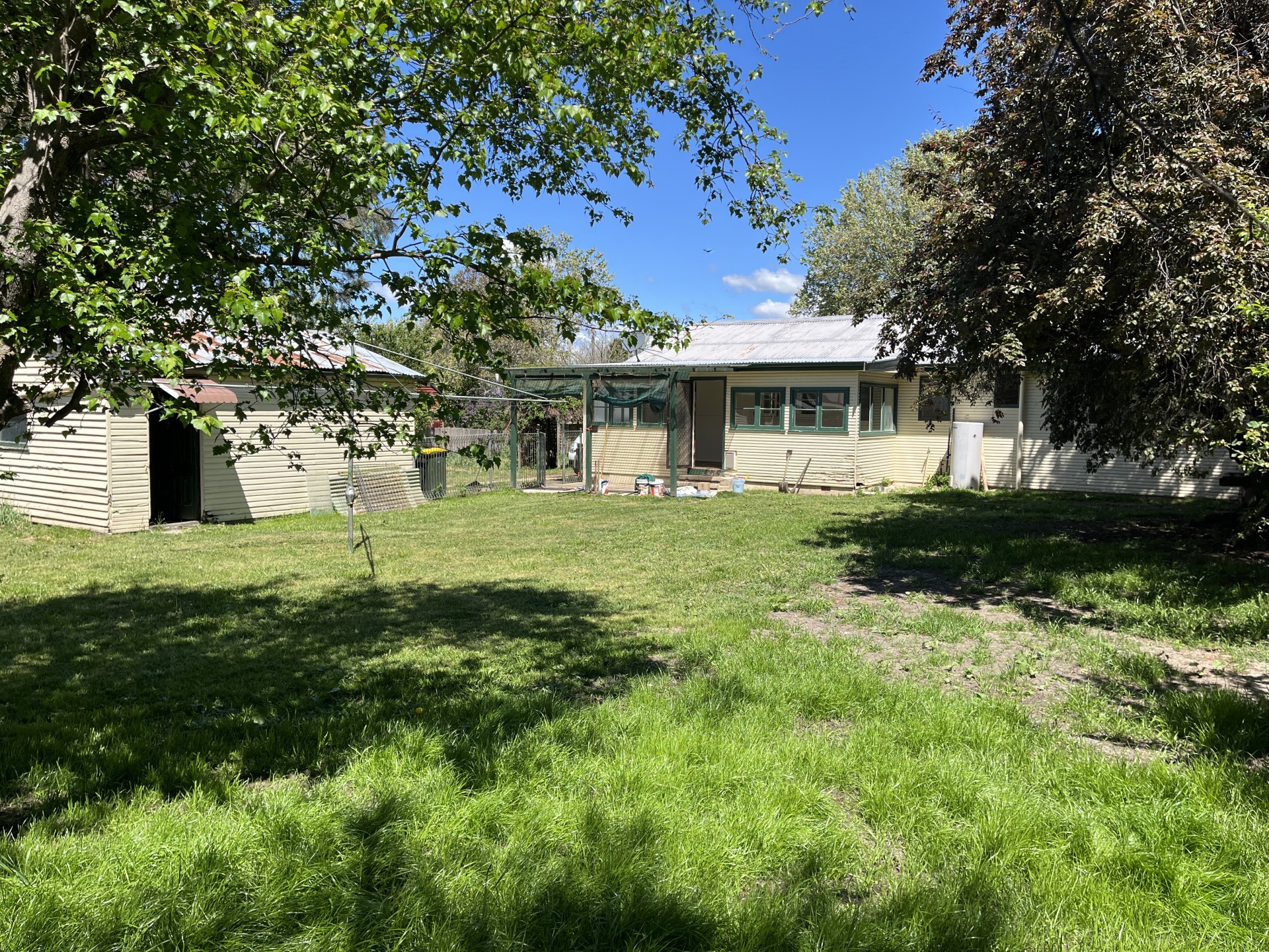 1960s three bedroom family home on enormous block, right in the centre of beautiful historic Braidwood village, two minutes walk to cafes and shops, two double garages plus a carport, wooden construction, north facing sunroom and very large level easy care back yard, kitchen/dining, lounge, two double and one single bedrooms, bathroom with bath (and shower over), internal laundry, two air conditioners, lpg gas hot water, nbn to house plus satellite streaming dish, private aspect, freshly painted inside, timber floors, slightly negotiable price.