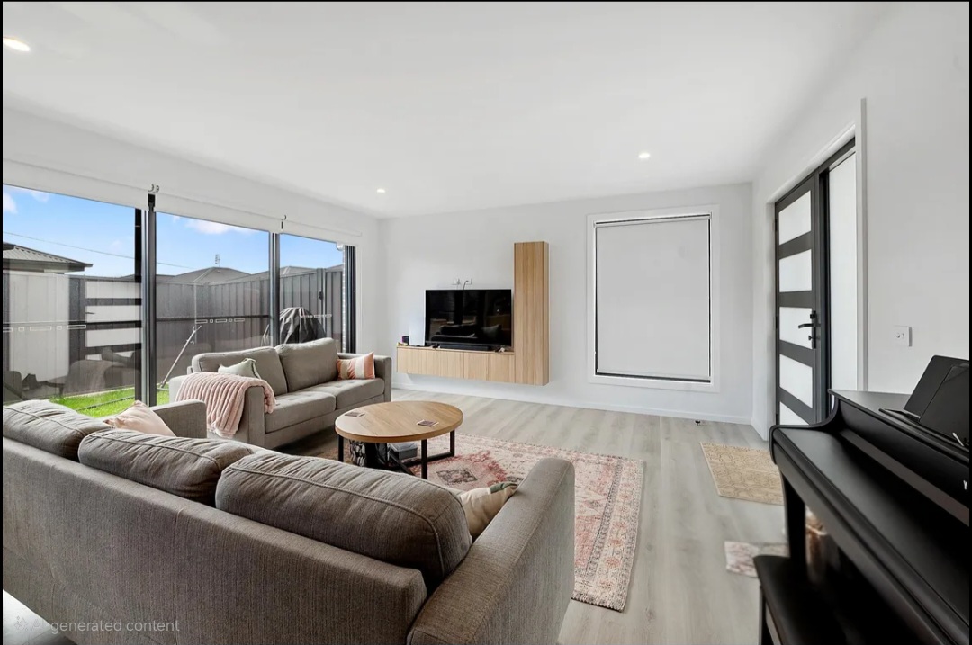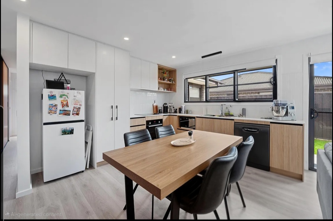 The open-plan living area is inviting and airy, with double glass sliding doors opening onto the garden area. The kitchen is equipped with top-quality appliances, soft-close cabinetry, and a generously sized pantry - perfect for both everyday living and entertaining.