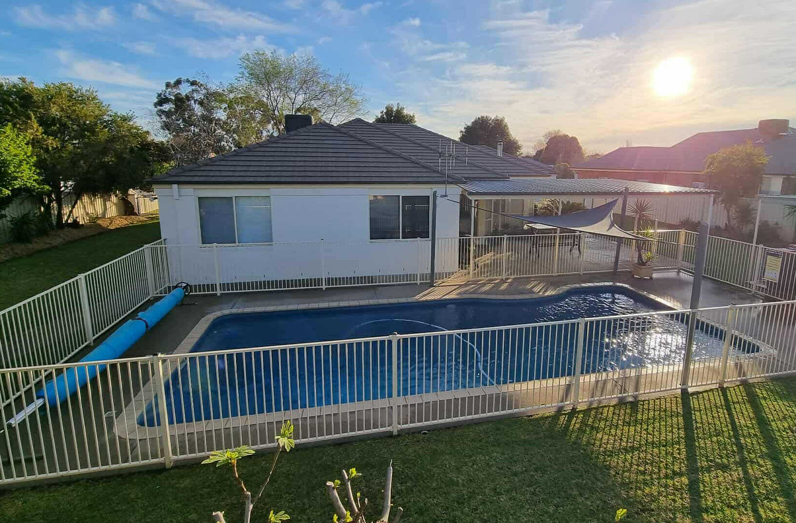 • A beautiful 10.4m x 4.2m (44,000l) saltwater inground pool, with automatic cleaning, and shade sails.