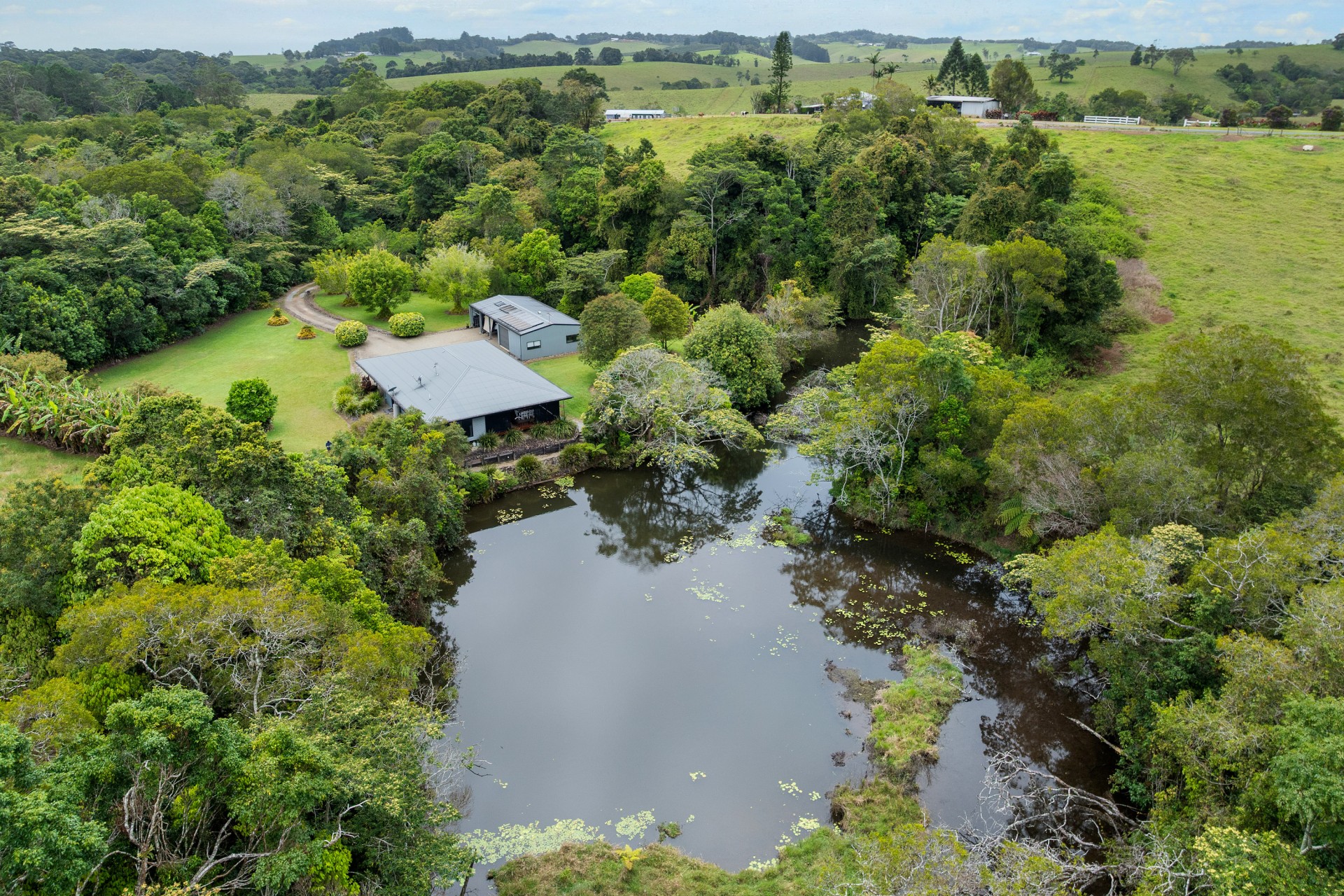 The house consists of a main bedroom with an ensuite and walk-in robe and 2 other bedrooms with mirror door built-ins. Beautiful views from every room in the house especially the main bedroom that overlooks Raspberry Creek.