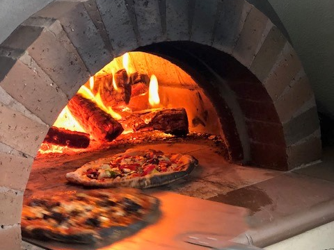 Huge Elfresco area with large outdoor fire place and built in bar b q and pizza oven .