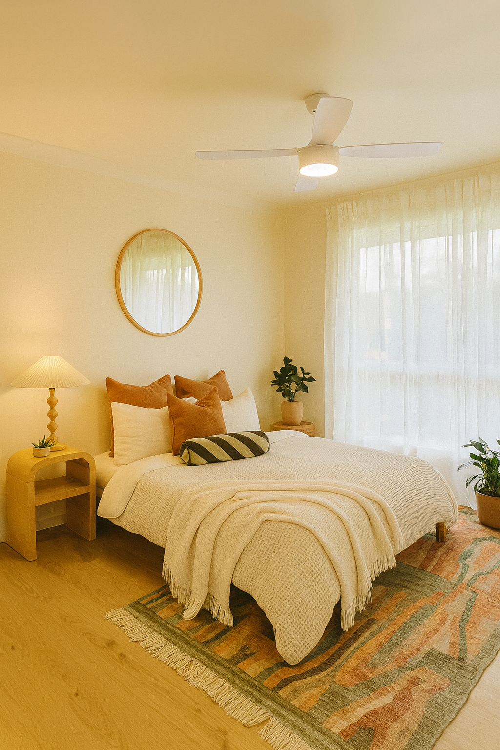 Step inside to discover open-plan living that flows effortlessly between the lounge, dining, and kitchen. The designer kitchen boasts stone benchtops, premium appliances, and ambient lighting that captures the warmth of Mediterranean living. Every finish - from built in Tv cabinet to the soft textured walls - whispers craftsmanship and calm.