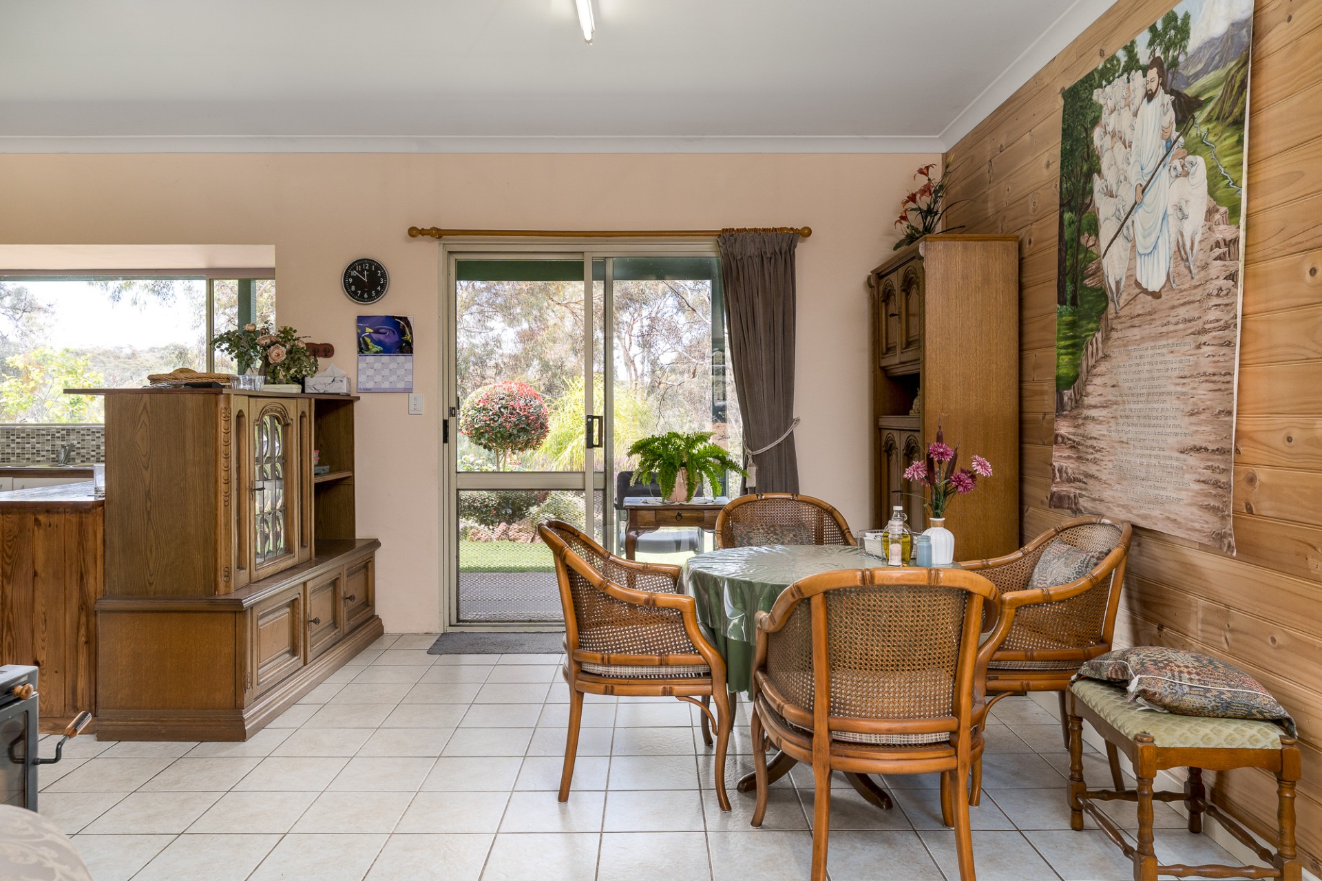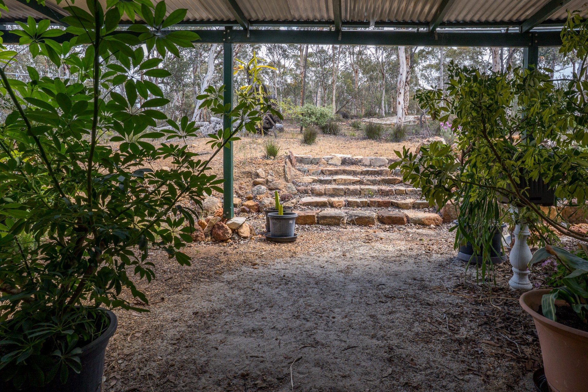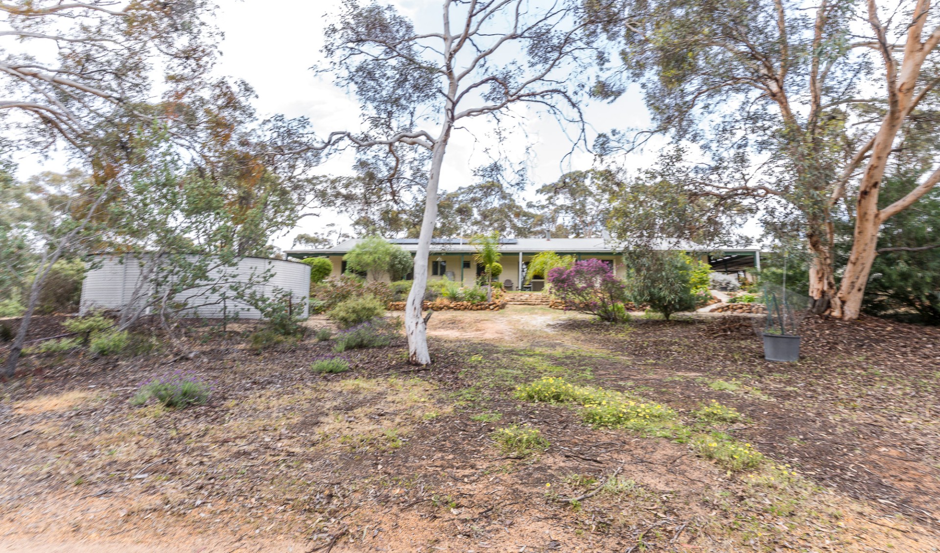 Netting covered fruit tree orchard and vegie garden space. Large water storage provisions.