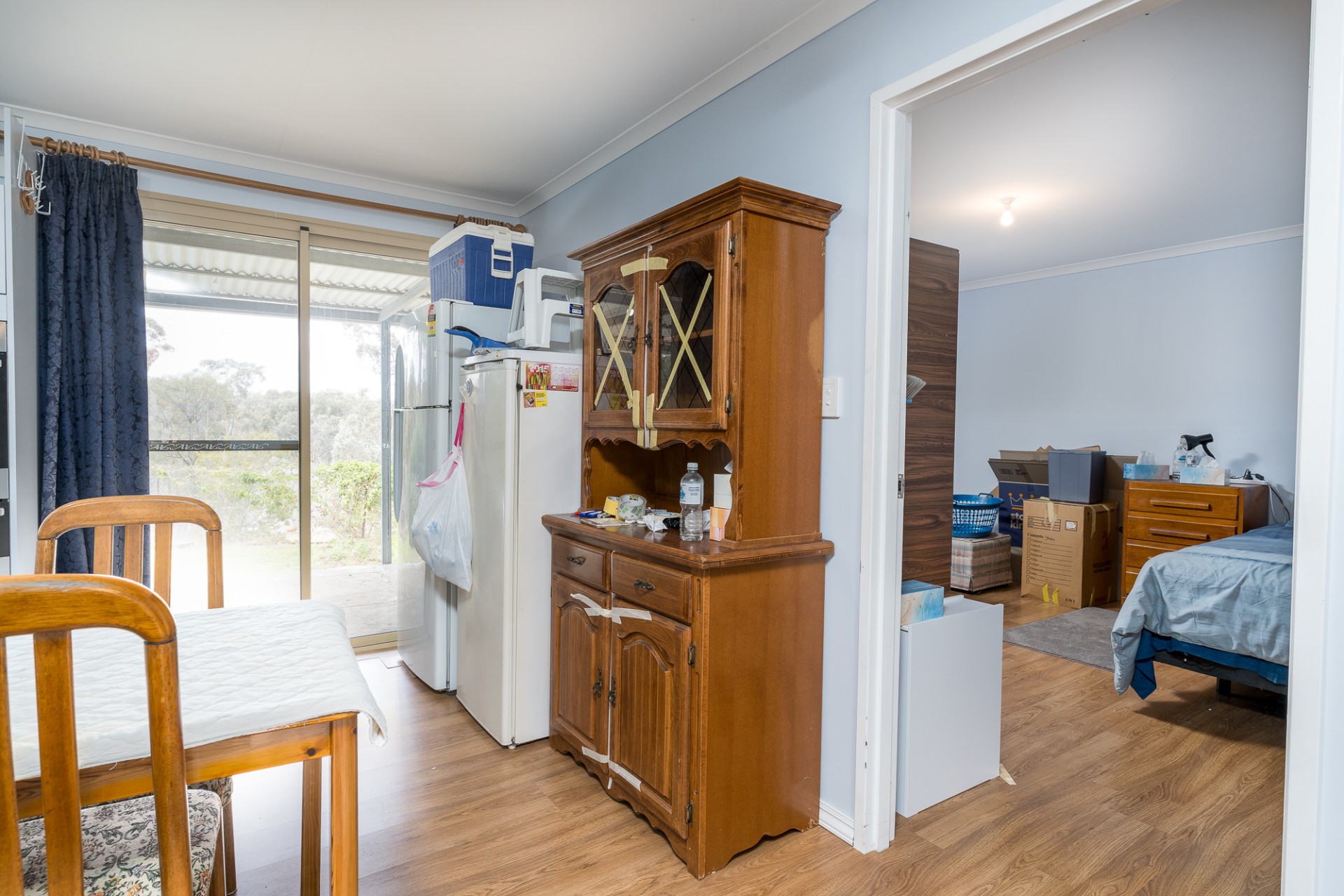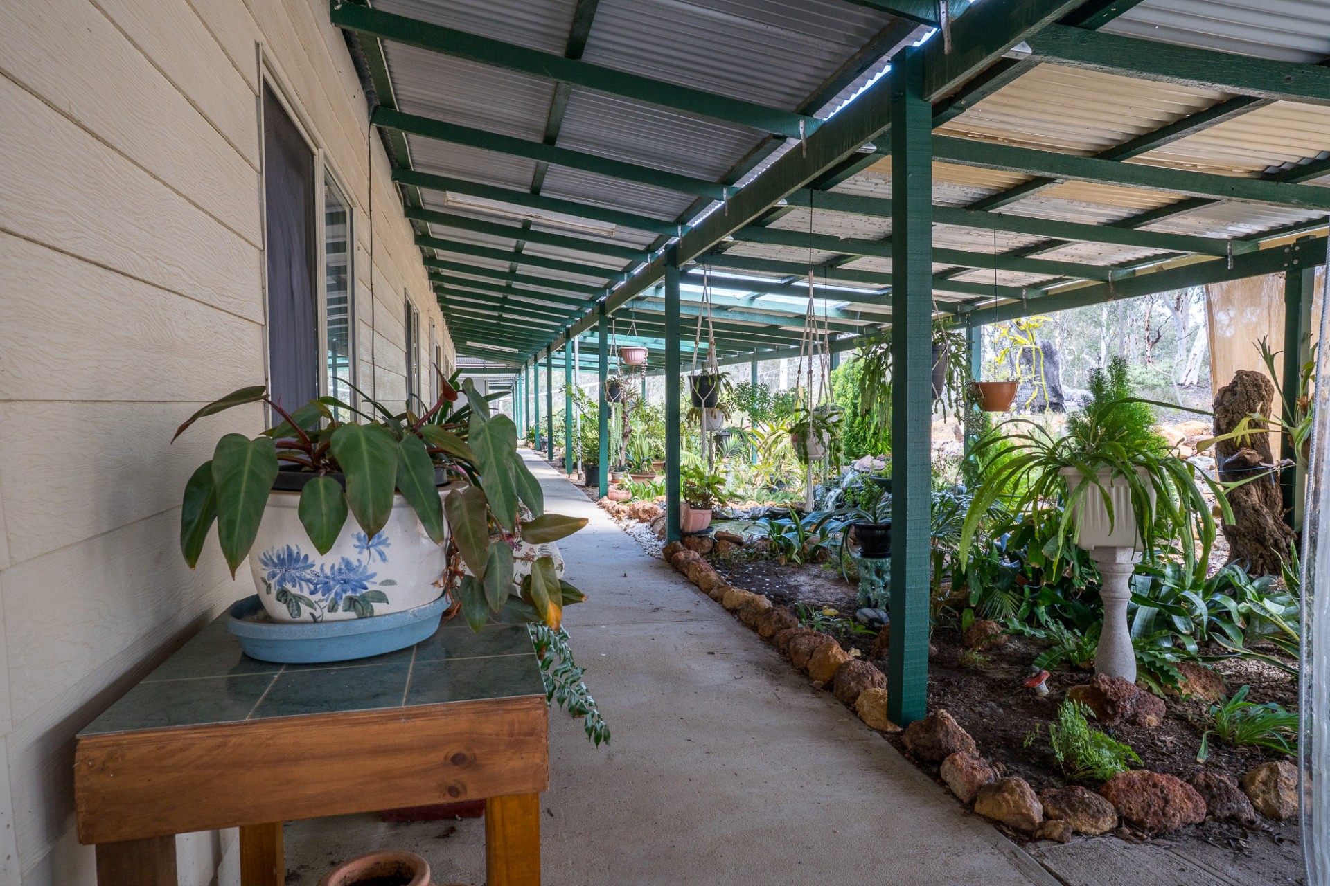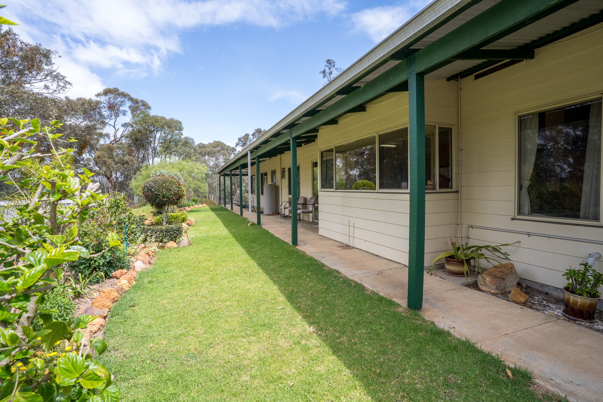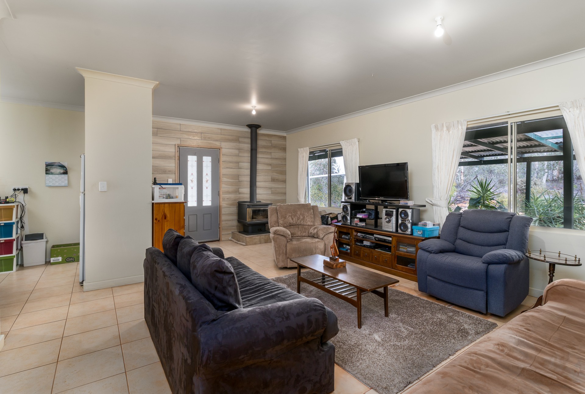 This is a big house with three living areas, three bedrooms. The main bedroom with ensuite walk through wardrobe. Plus, a separate bathroom. Two kitchens. Two wood burner heathers. One air-conditioner. All around verandas. Plus, there is a one bedroom and one bathroom granny flat with kitchen and lounge. Outside there is a big shed with concrete floor and power board. Adjacent undercover entertainment area with concrete floor.
