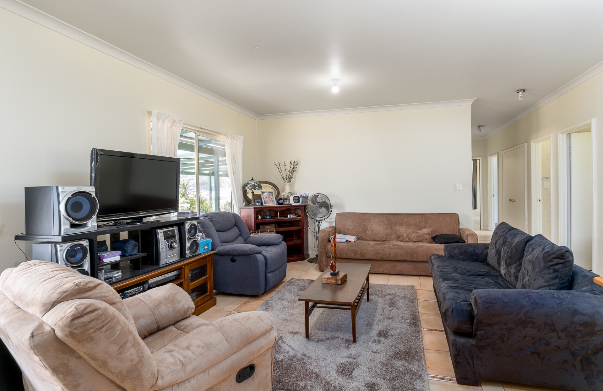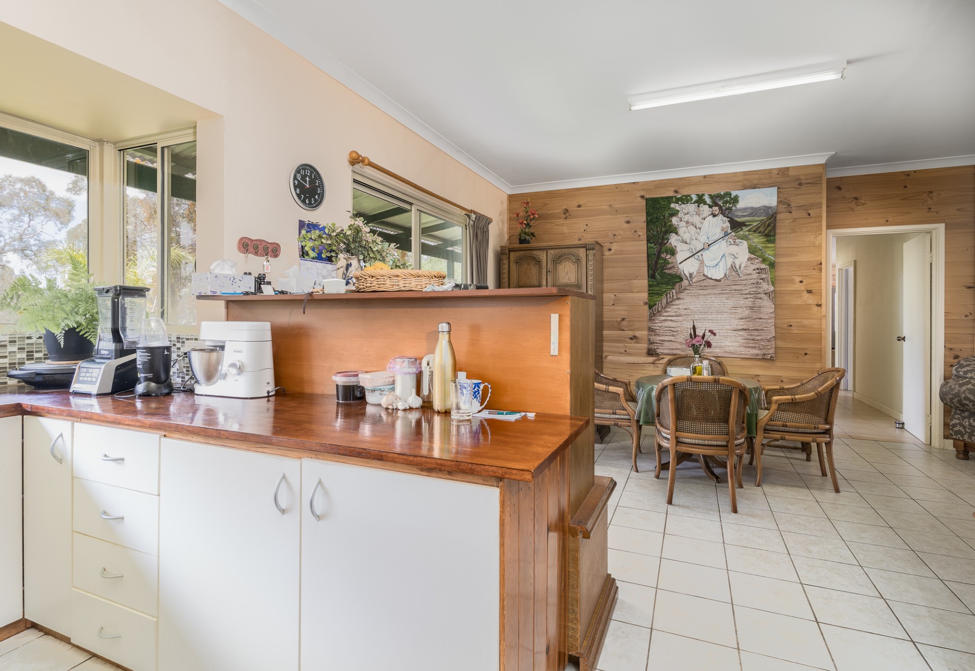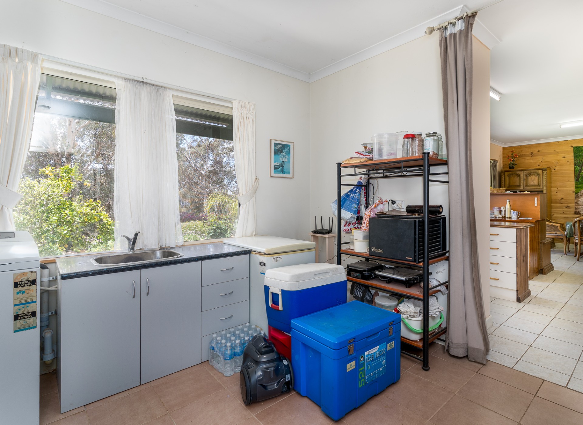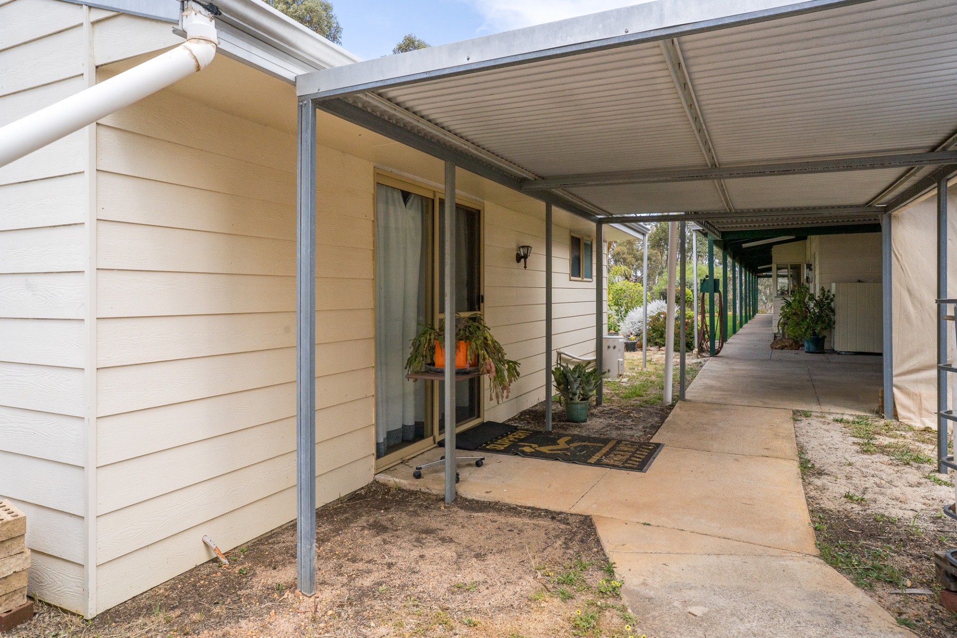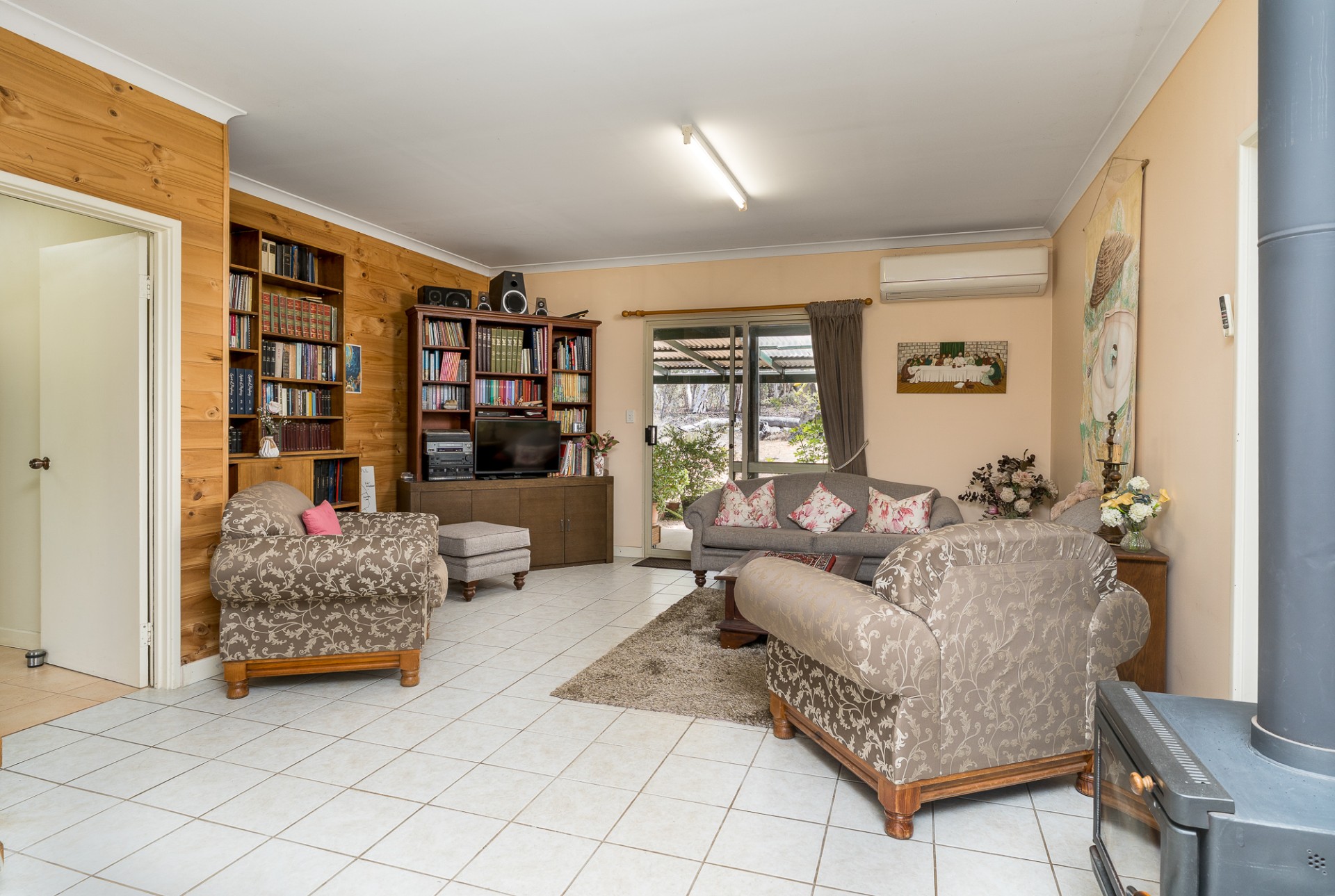 This is a big house with three living areas, three bedrooms. The main bedroom with ensuite walk through wardrobe. Plus, a separate bathroom. Two kitchens. Two wood burner heathers. One air-conditioner. All around verandas. Plus, there is a one bedroom and one bathroom granny flat with kitchen and lounge. Outside there is a big shed with concrete floor and power board. Adjacent undercover entertainment area with concrete floor.