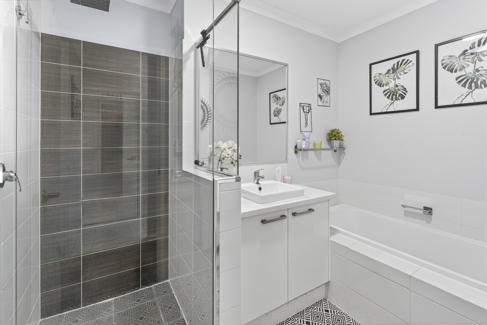 * Ensuite: new Carinya classic awning window with white translucent glazing, completed with stylish Matt Black tap-ware including rainfall shower-head.