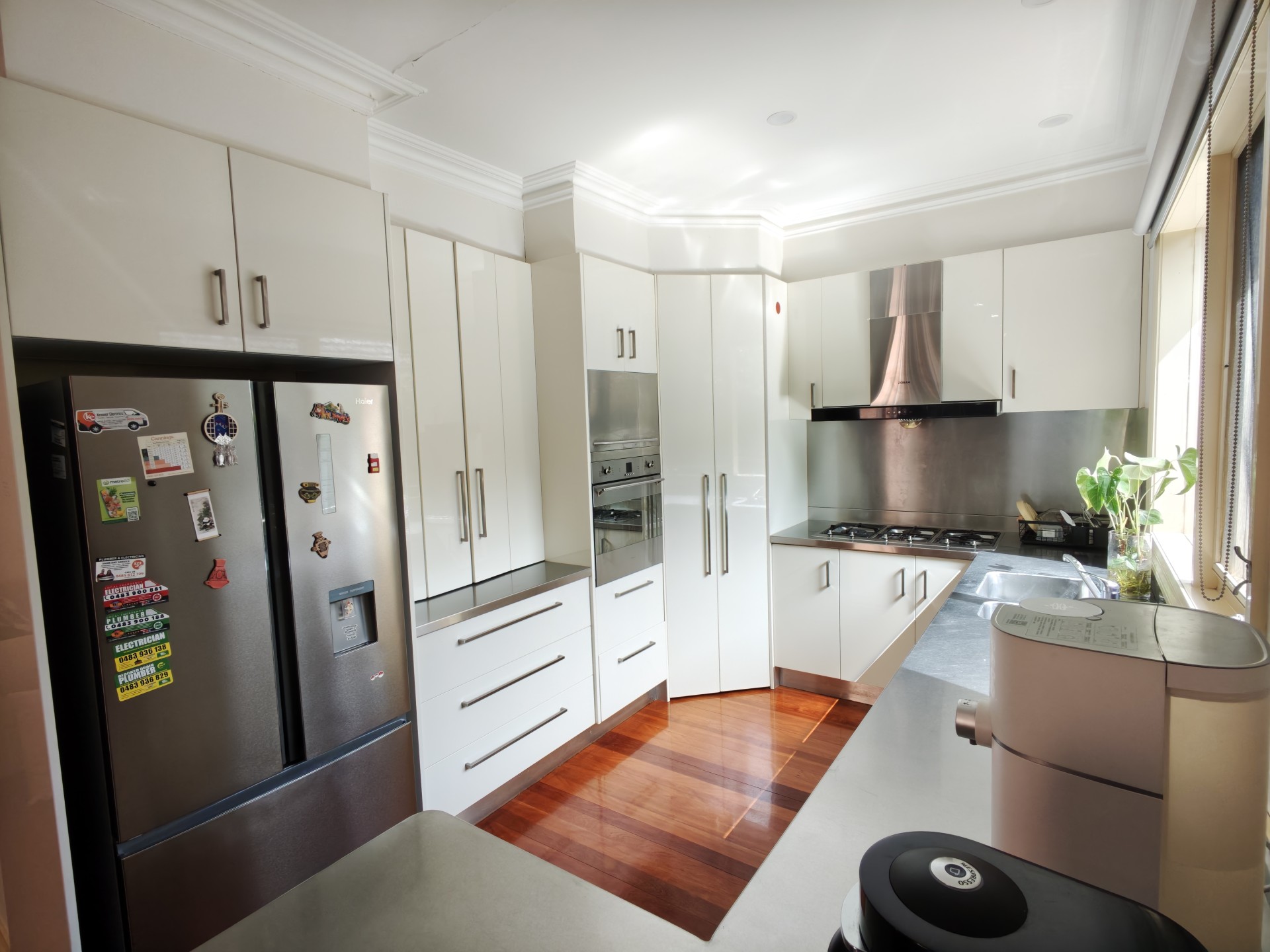 The gourmet kitchen with stainless steel benches and ample storage space. A fourth bedroom can be converted into a study, and both the master bedroom with full en suite and the two double bedrooms offer plenty of space.