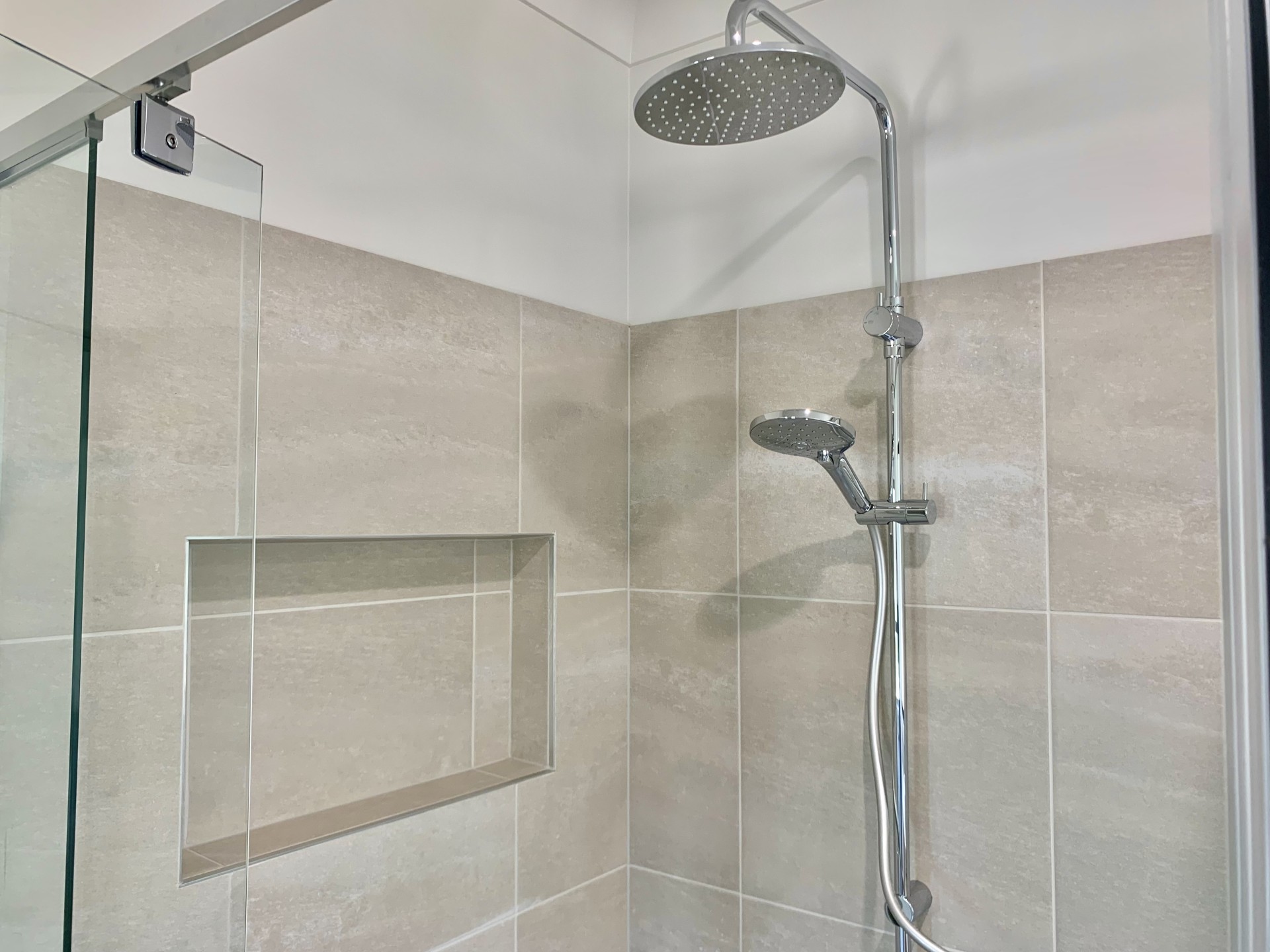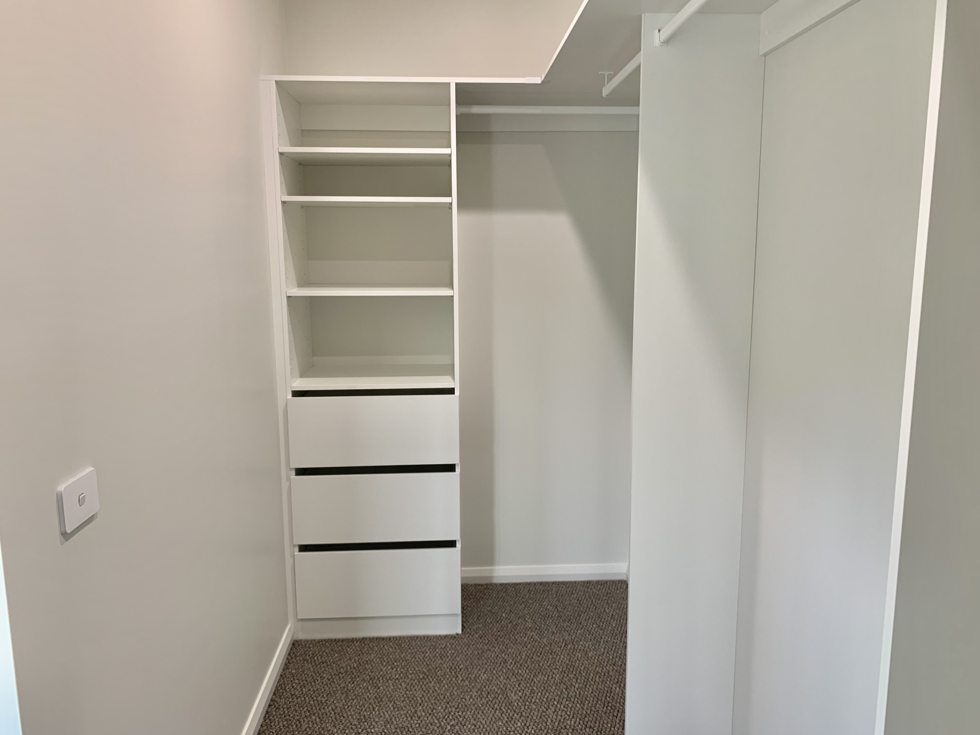Spacious bedrooms with large built in wardrobes including shelving and draws.