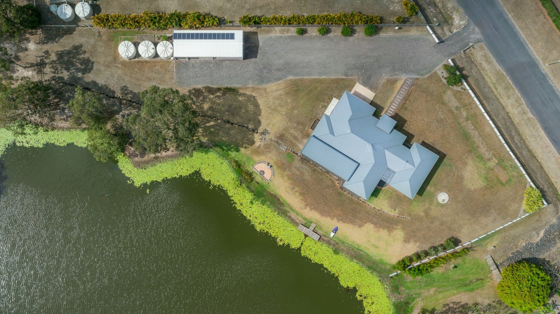 Outdoors, the property truly shines. The lake and jetty attract an abundance of birdlife, with turtles and fish adding to the sense of connection with nature. A substantial 20m x 6m shed with open bays provides ample space for boats, caravans, and multiple vehicles, while three 22,000-litre water tanks and a 3kW solar system support sustainable living.