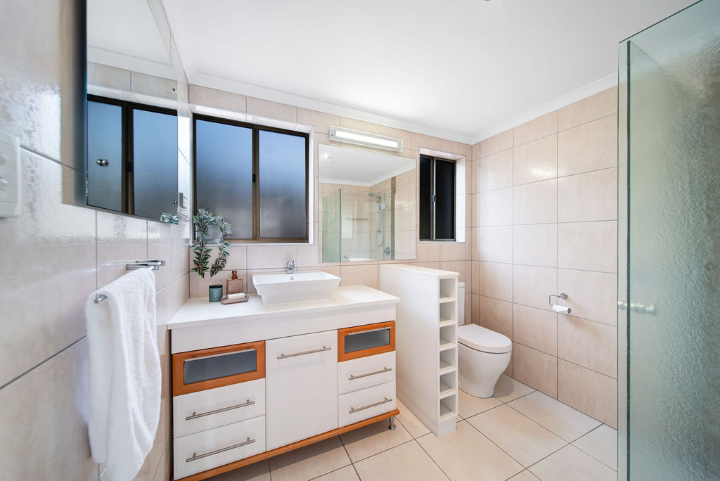 Privacy is paramount here, with a large front fence ensuring seclusion and tranquillity. The lower level offers a retreat for relaxation or a play area for the kids, adding versatility to the home's layout.