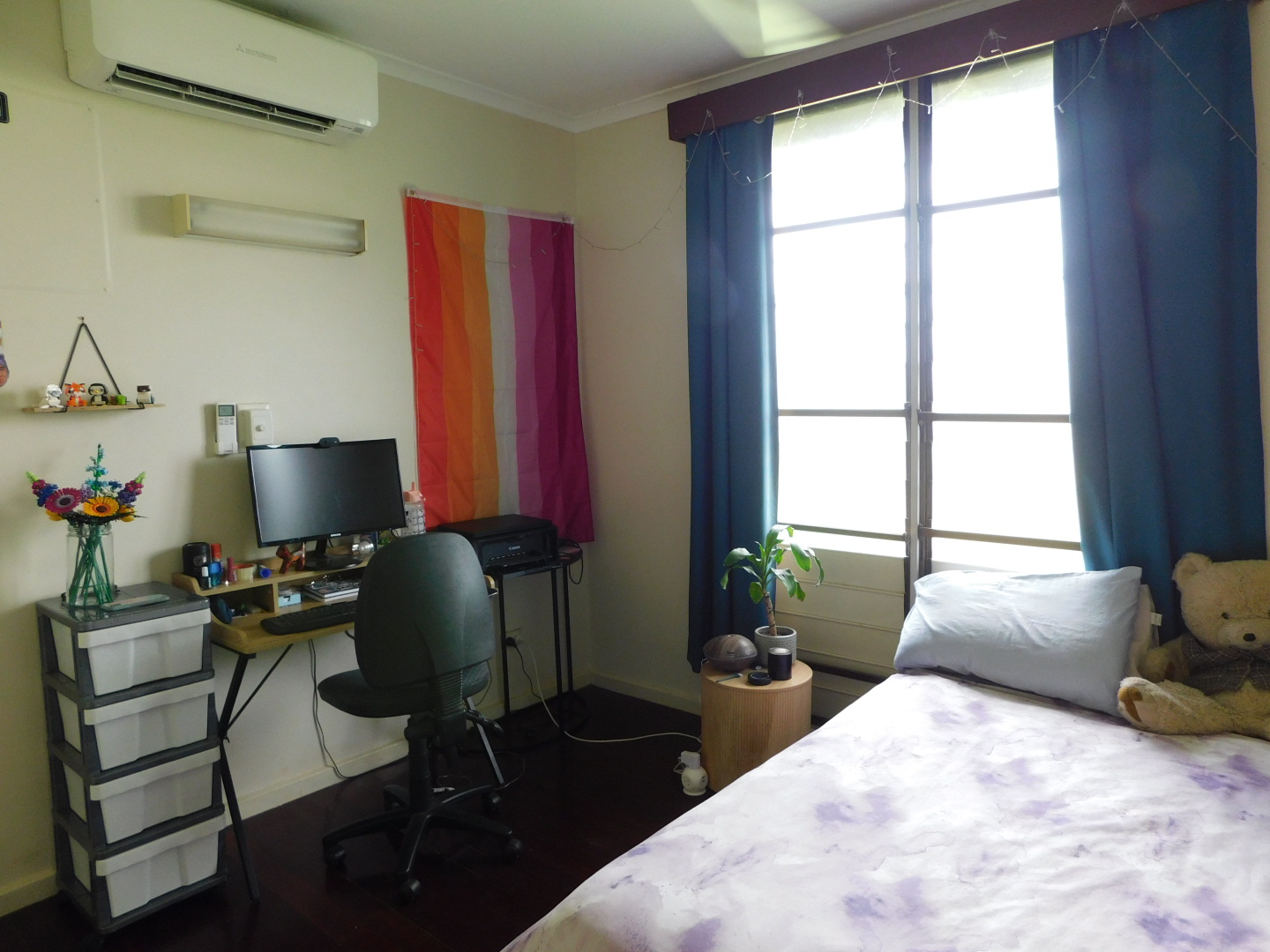 Quiet location, elevated 3 bedroom home, large living spaces, shady garden.