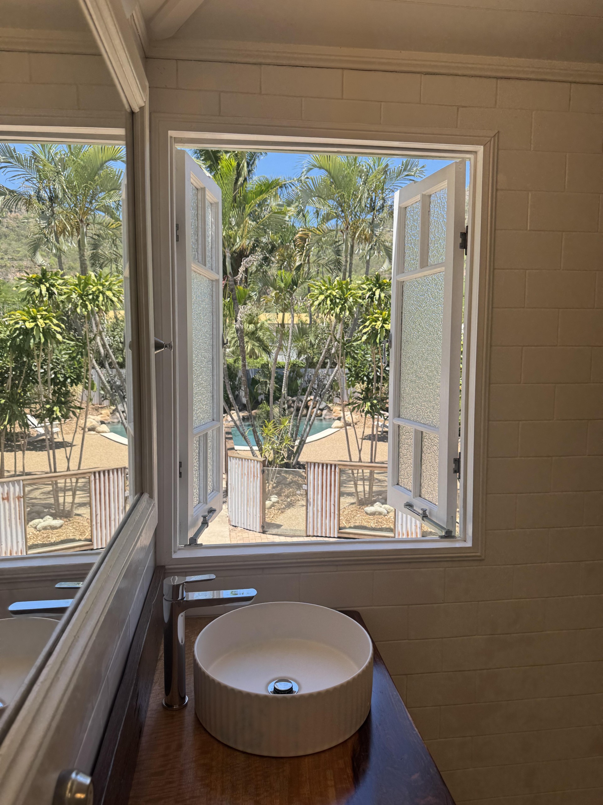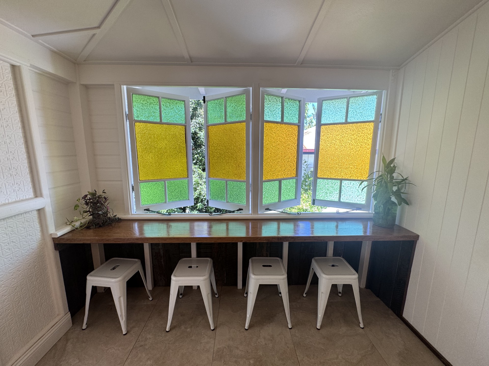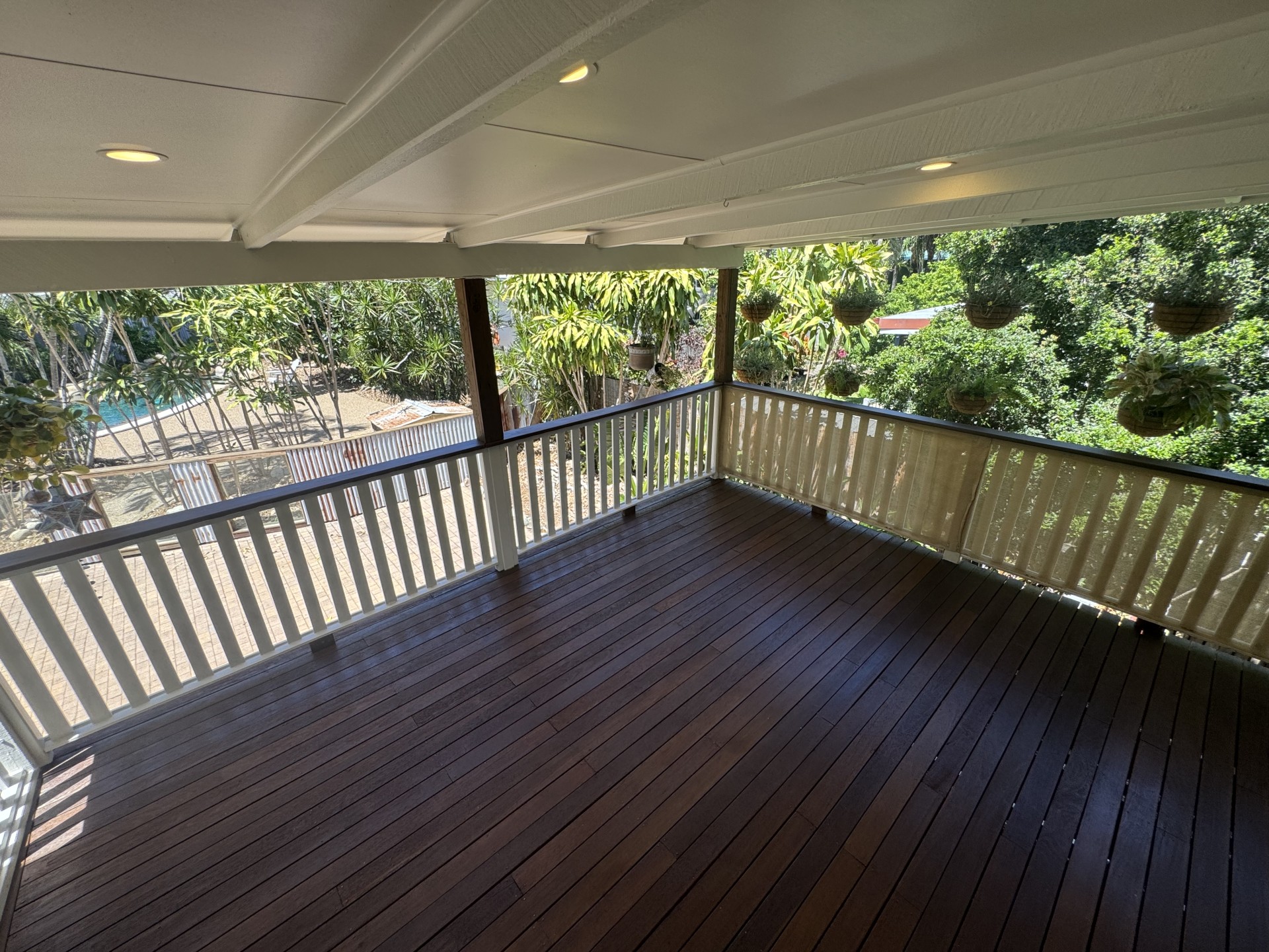 As you arrive, the large and secure front veranda sets the tone for relaxed North Queensland living. Step inside to discover a spacious interior featuring traditional tongue-and-groove walls and ceilings, 3-metre-high ceilings, French timber doors, and coloured casement windows that flood the home with light.