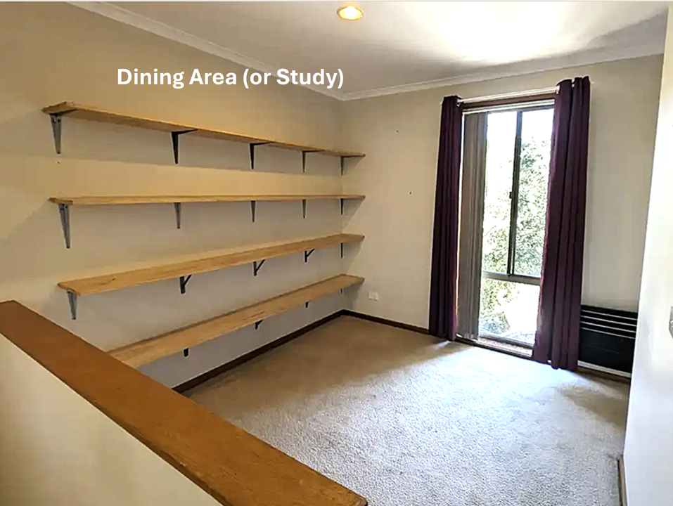 The main living areas are located upstairs in an open, welcoming layout with the lounge flowing into the dining area (or study) and continuing through to the bedroom with ensuite toilet. Downstairs, a second comfortable bedroom is accompanied by a bathroom and separate laundry, providing excellent privacy and versatile living options. An internal garage provides secure parking and also presents potential for conversion into a generous additional living space.