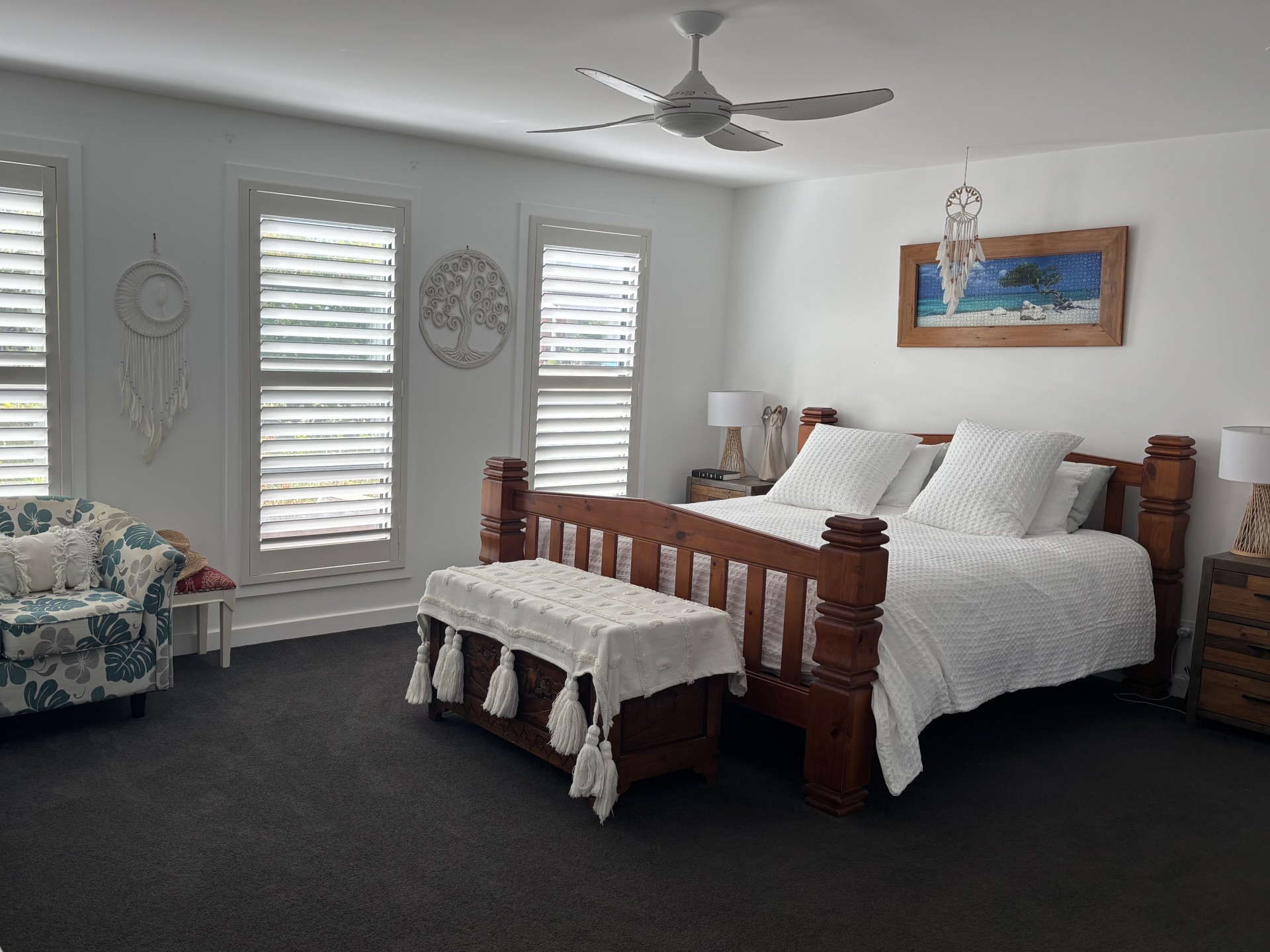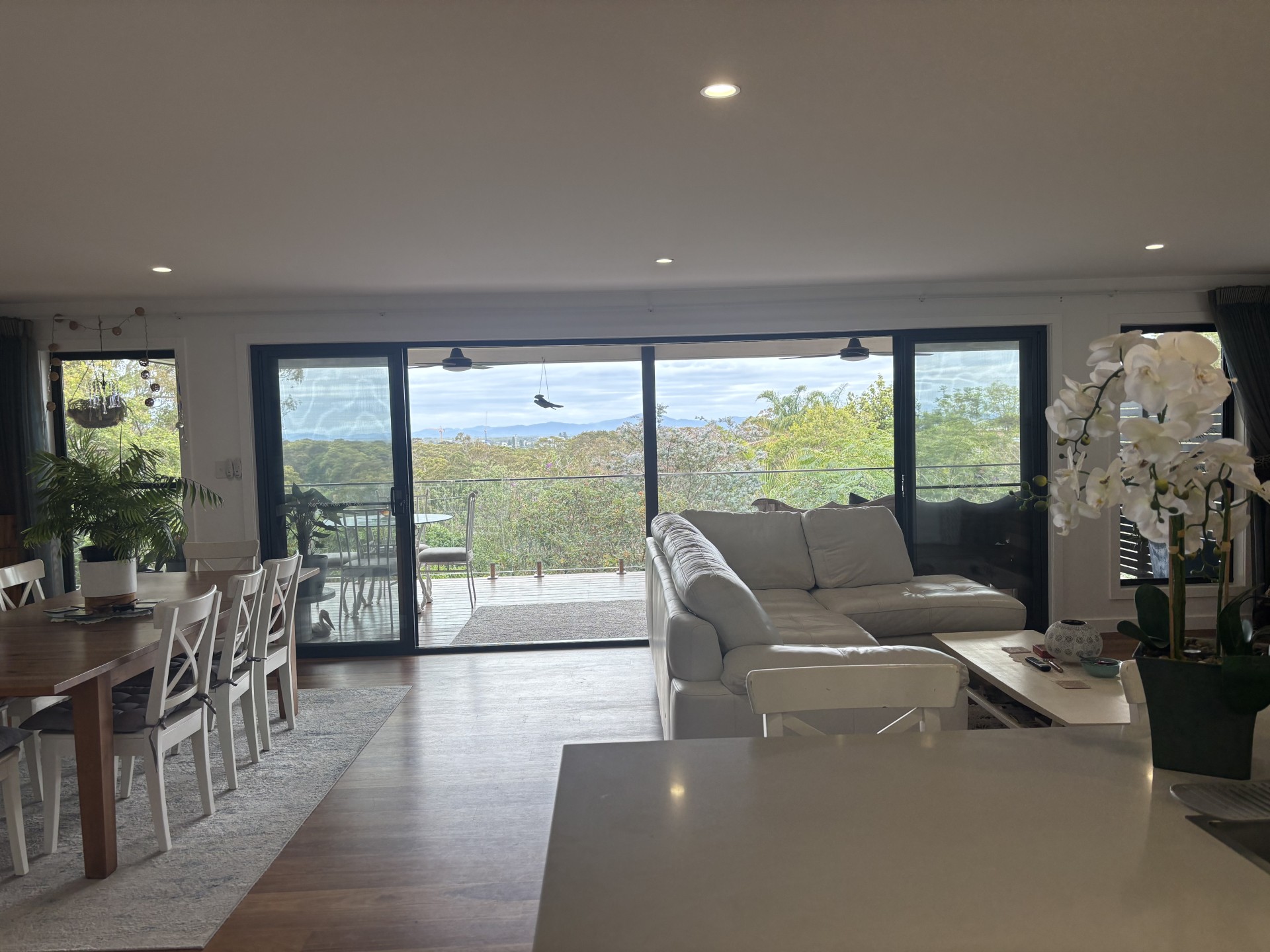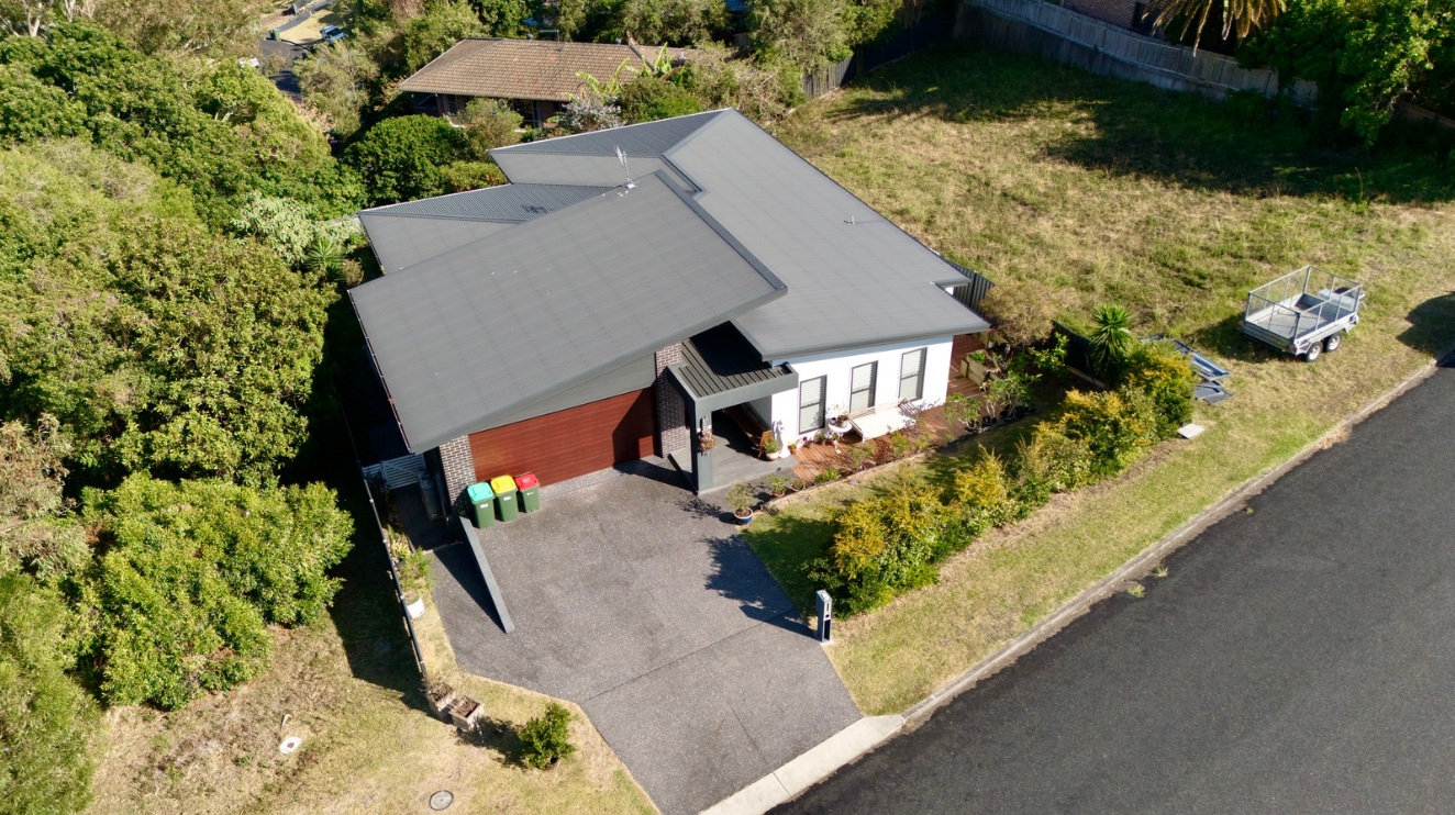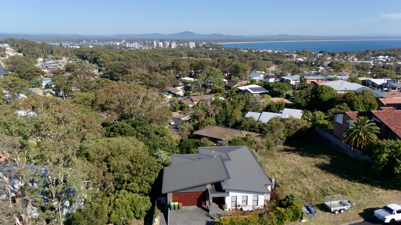 Tucked away in one of Forster's most peaceful pockets, is a 7 year old home that offers the perfect balance of privacy, space and scenic beauty. Watch the spectacular Sunsets, sweeping district and mountain views and lush greenery as your backdrop, it's a property that instantly feels like a retreat while still keeping you close to everything. At the heart of the home on the entry level is the open-plan living, dining and kitchen, A/C, located on the upper level. High ceilings and large windows give this space an airy, light-filled feel, while sliding glass doors open to a north-facing entertaining deck with ceiling fans/lights, and a tap, uninterrupted views over the treetops across the lake to mountain ranges. The upper level also features a media room, oversized master bedroom with walk around WIR , ensuite. and plantation shutters. Ceiling fans throughout entire home, Walk in Linen , plus an extra powder room for guests. The kitchen is well equipped with induction cook top, wall oven, island bench/breakfast bar , generous bench space, a large Walk in pantry and overhead storage make it both practical and functional for everyday use. Internal access to a double garage, 2nd laundry and large storeroom at the rear of the garage. Down the beautiful timber stairs, There is an additional 3 bedrooms all have BIR's 2nd bedroom with doors opening onto patio, and nice bushy outlook over the rear of the property. Full bathroom which includes a full-sized bathtub, separate shower and a separate toilet. The lower level offers excellent flexibility, with a 2nd lounge area with wetbar that opens directly to the patio and backyard. Whether you're accommodating guests, or extended family, this floorplan supports dual-living potential with ease making it an ideal investment opportunity. Located just minutes from Forster's schools, beaches, Championship golf course, clubs, shopping, walking tracks, and less than 1km to One Mile Beach this home offers both tranquillity and convenience for families at any stage.