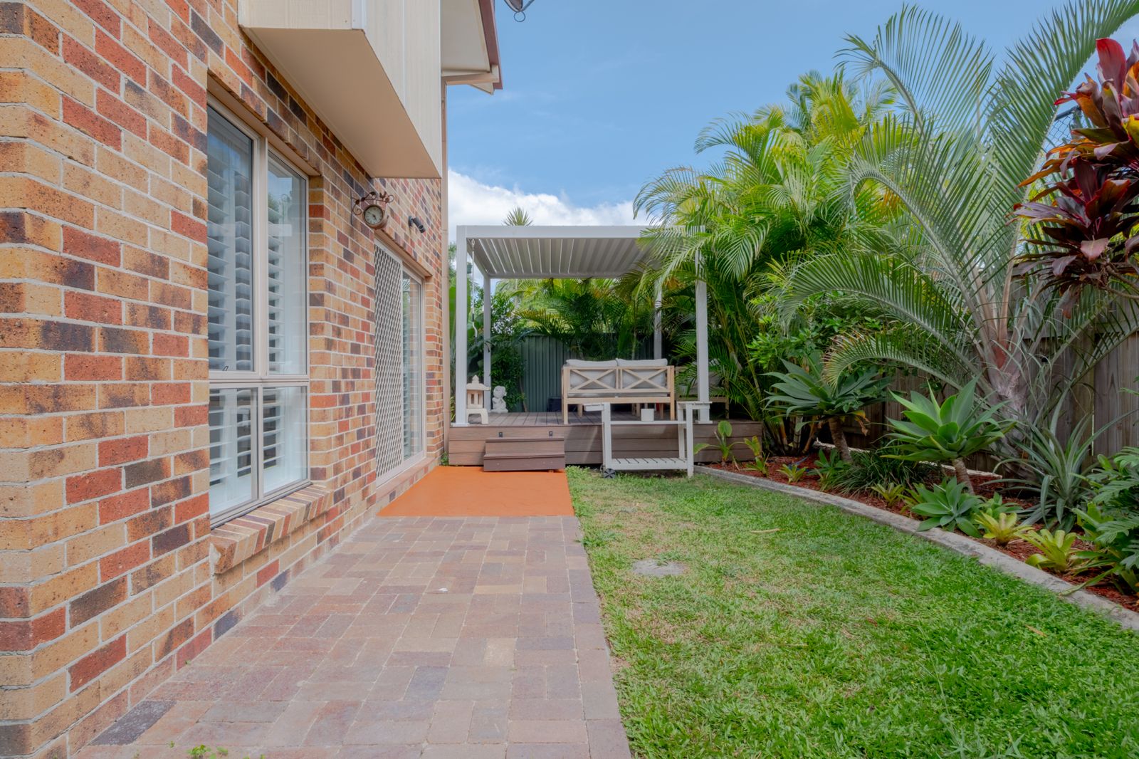 A standout feature is the backyard: a private tropical retreat with a deck and pergola surrounded by palms, completely secluded and ideal for outdoor dining or quiet evenings. It's easy-care, has side access, and feels like your own little oasis.