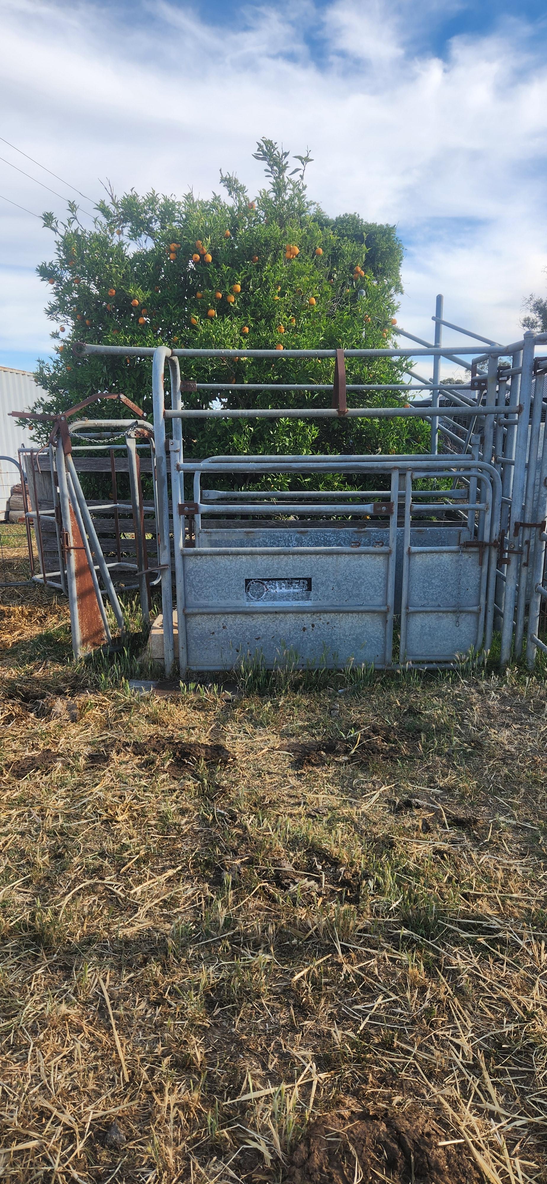 4 Paddocks with own "auto fill" troughs. Fully fenced. Fox proof chook pen. Separate yards with cattle crush and truck loading ramp.