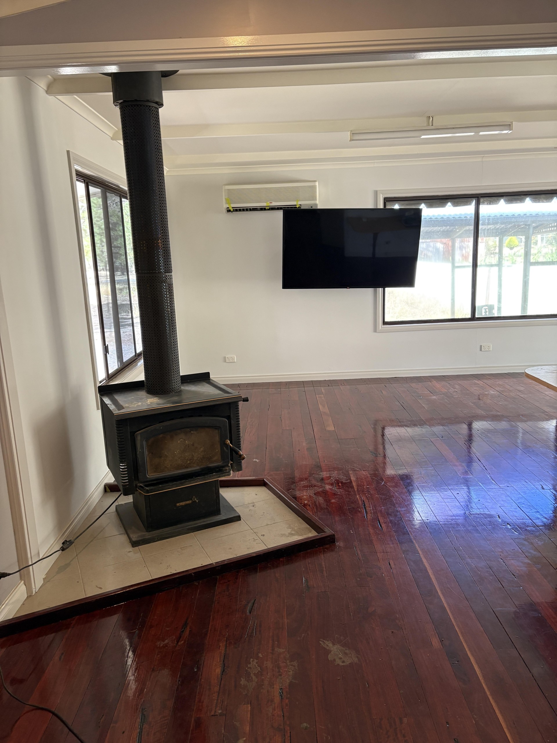 A/C and wood heater in lounge.