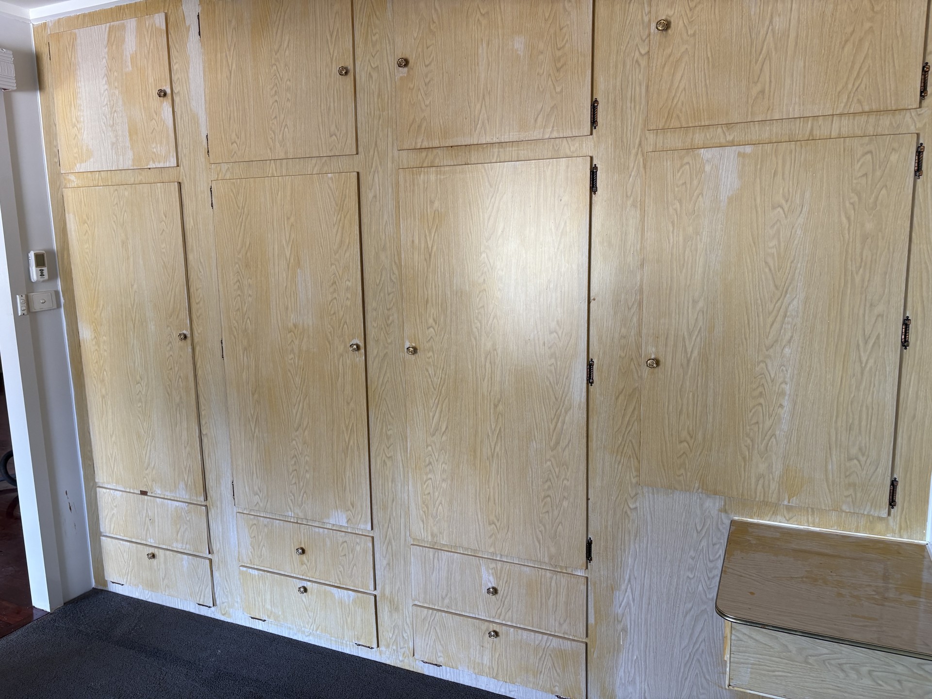 Carpet in bedrooms, Timber floor in kitchen dining and lounge areas.