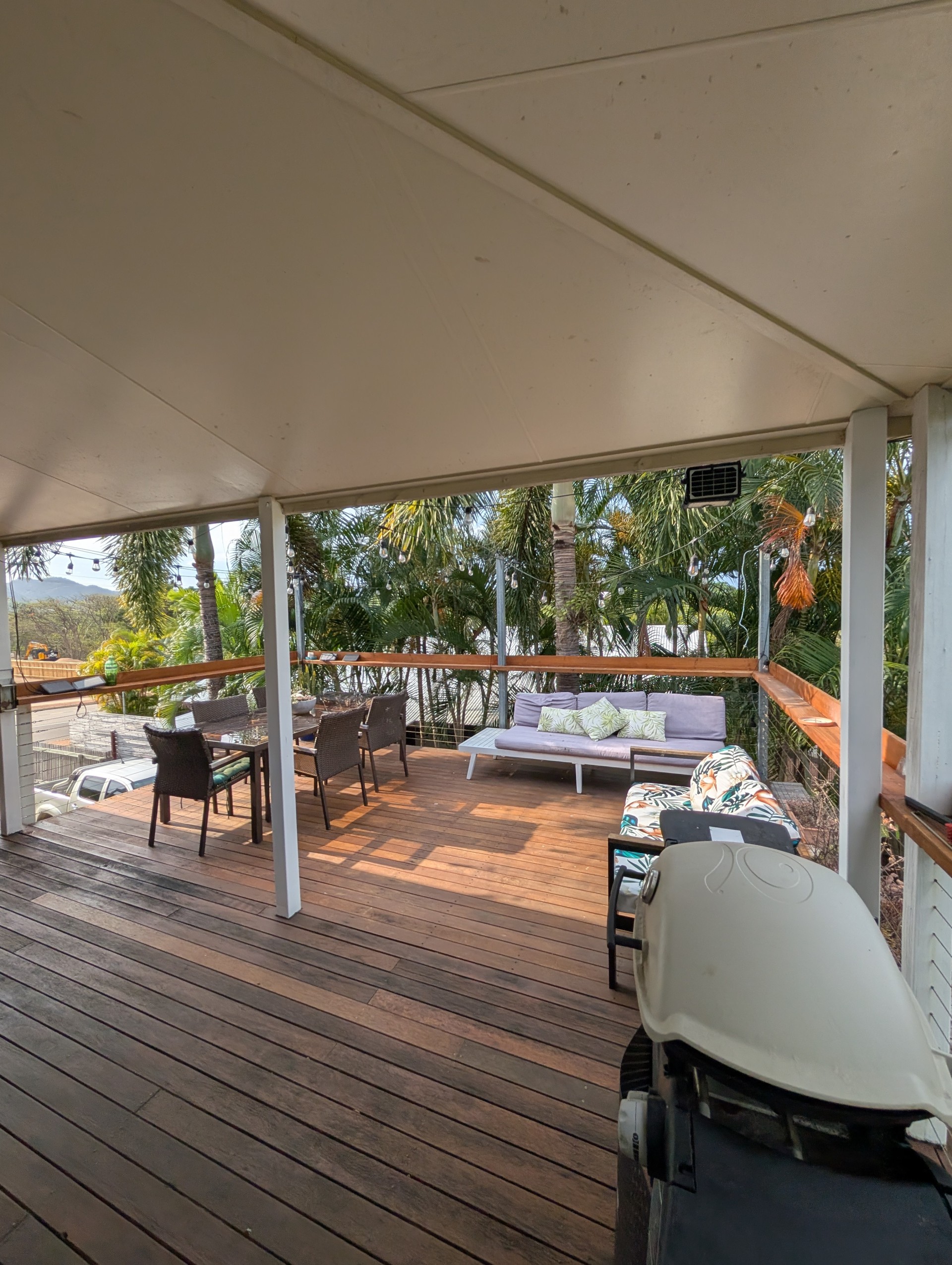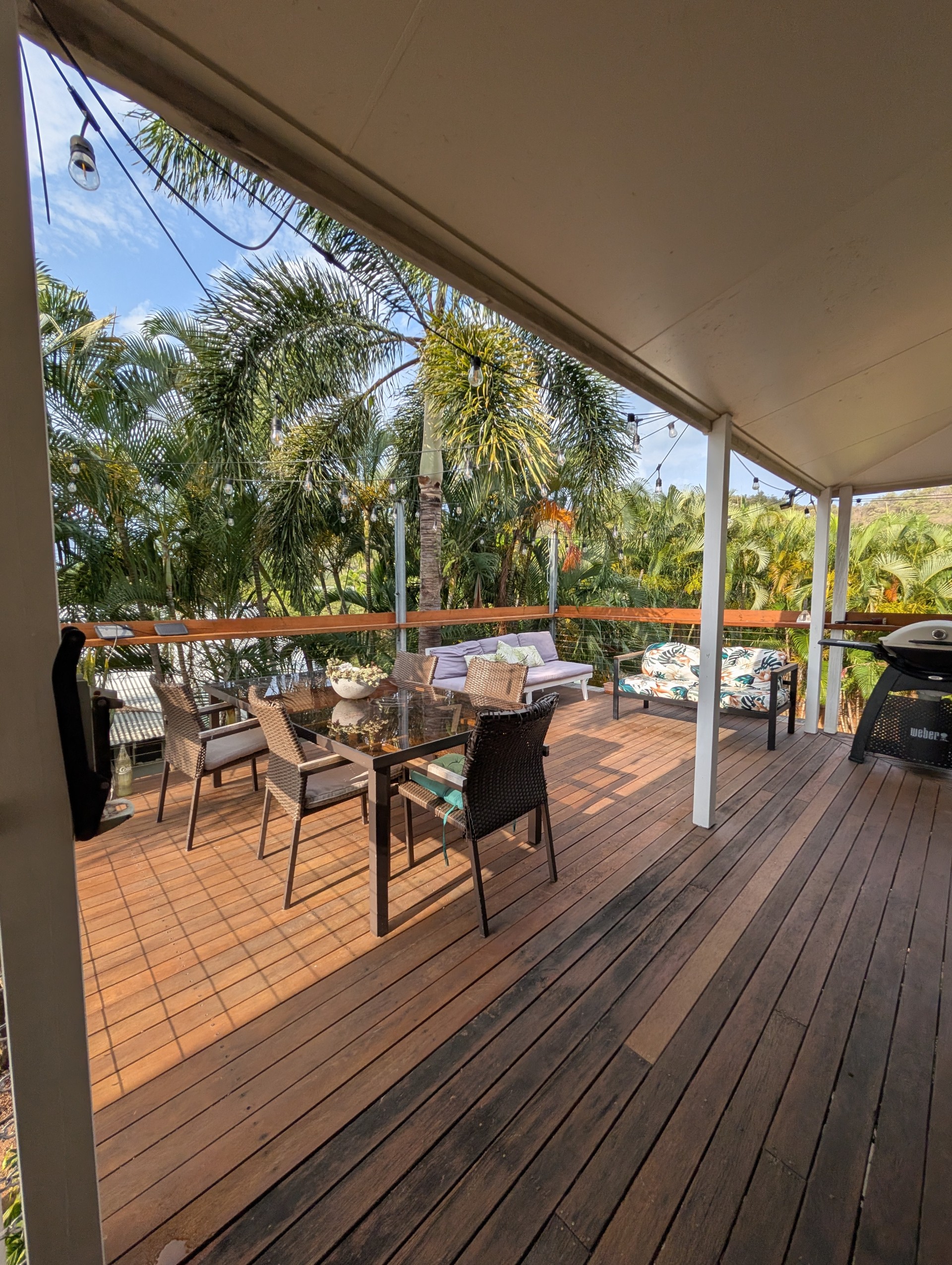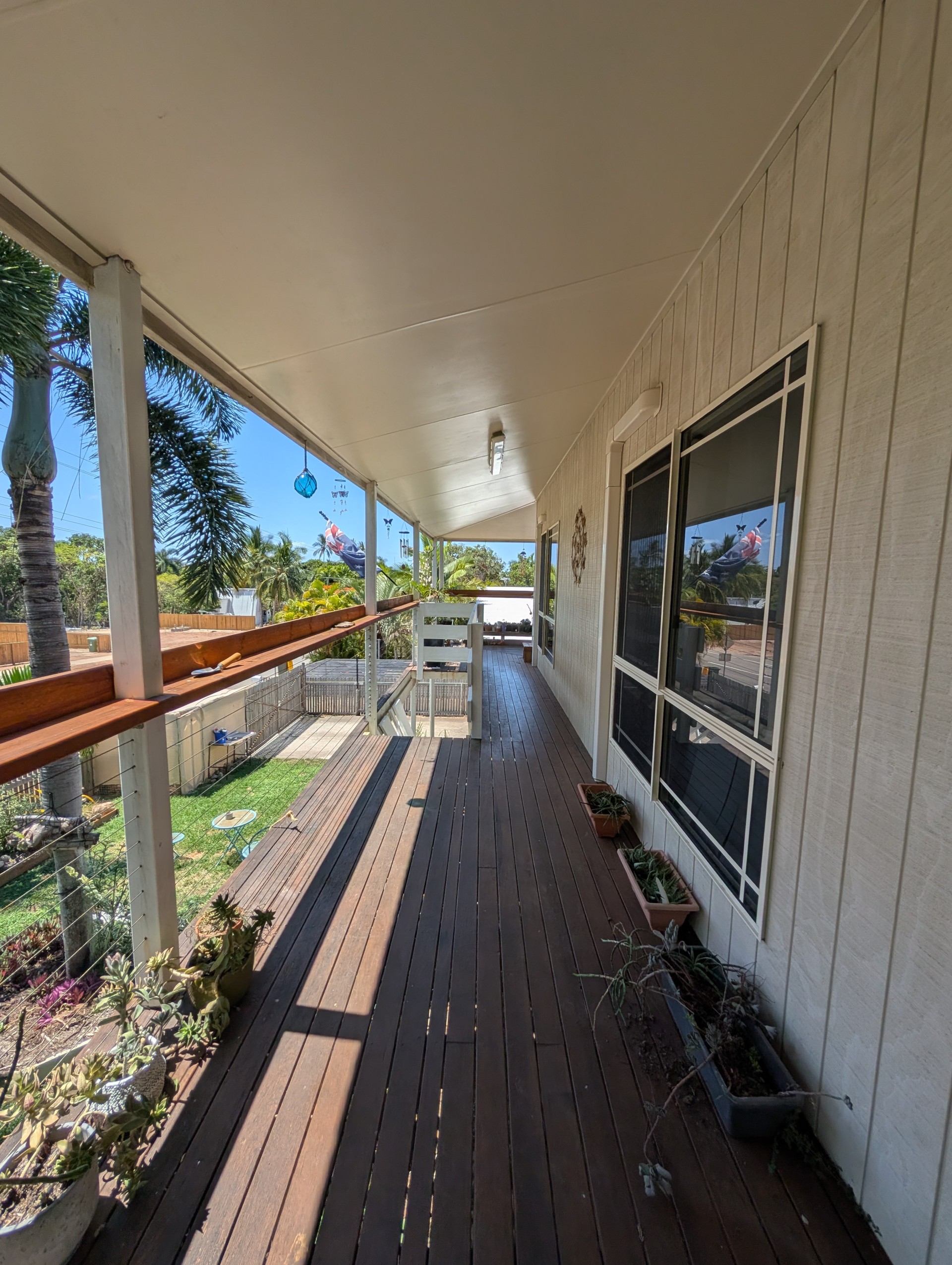 Built in 2001 by renowned island builder Peter Braddick, this quality high-set home showcases durable hardwood construction and classic Queenslander-inspired charm. Lovingly maintained and upgraded since 2021, the property features updated verandah railings with modern wire balustrades and pine tops, along with a stunning 3m x 5.4m hardwood deck extension (2022). Both the deck and verandah tops have been oiled every six months, ensuring long-lasting beauty and protection.
