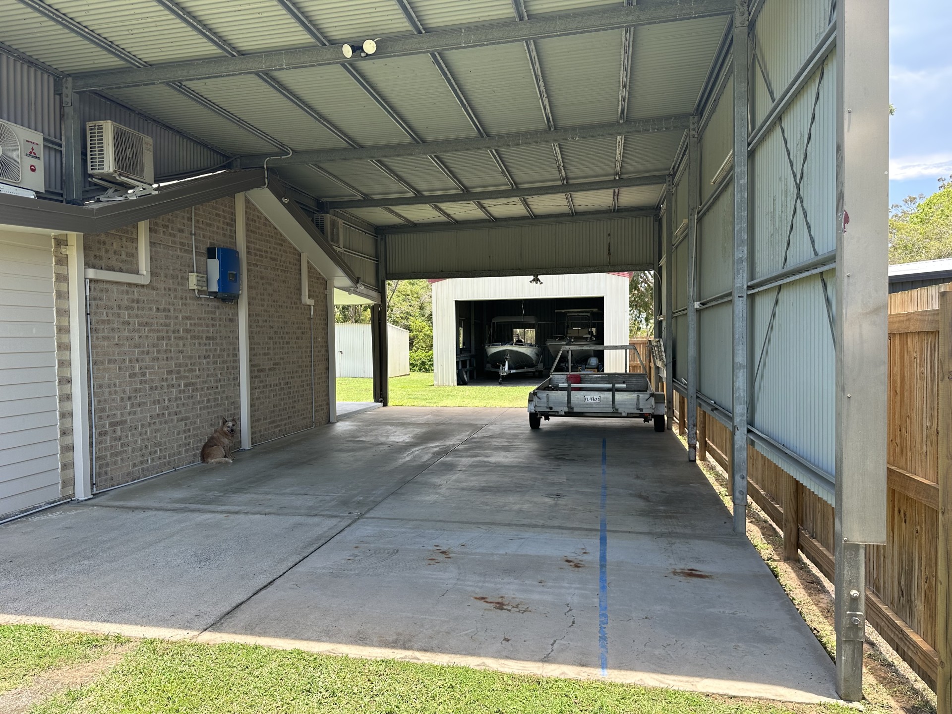 Welcome to 18 Joe Johnson st Seaforth, this immaculately presented property is on a massive 1192 metre block backing onto crown land at the end of a very quiet cull de sac and it is ready to move in to for the festive season a 2 minute walk to stunning Seaforth beach and the beautiful new waterpark. The huge 6x12 metre (boat caravan bus ) shed will fit the largest trailer boat you can tow. The other 6x12 metre fully enclosed shed will easily accommodate all of your other toys. Then there's the garden shed for those days you can't go fishing. The 3 bedroom brick house with open plan living room and new kitchen is fully tiled and air conditioned. The 3 bedrooms all have air conditioning and fans and built in wardrobes The main bedroom has a full ensuite complete with bathtub and tv . There is another room that could be used for a office, bedroom, sewing room ) attached to the second bedroom.There is a 6.6 kw solar system on the roof as well as a solar hot water system. The yard is fully irrigated with pop up sprinklers and is fully fenced. Established fruit trees include mango, lychee, lemon, Avocado, mandarin, 4 different passion fruit vines and Brazilian cherry. A short stroll and you can put your crab pot in Seaforth Creek.