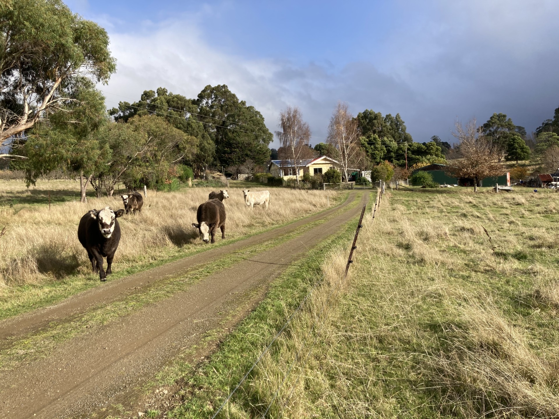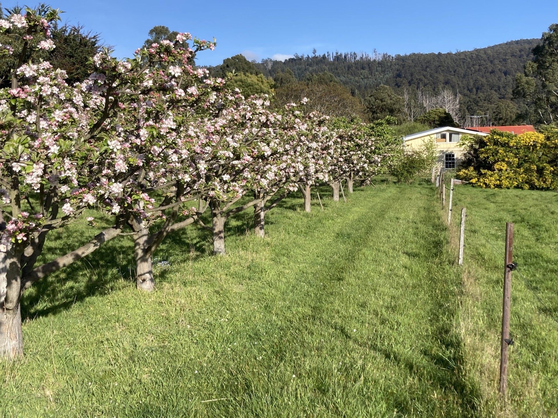 The land of fertile dolerite soil, can be irrigated from a spring-fed 1 megalitre dam equipped with 3-phase pump. A permanent creek runs through the property. Boundary is wallaby proof, 5 paddocks fenced and watered for cattle. A 50 tree orchard contains 17 varieties of apples and pears. Small areas of mature native trees have been extended by plantings in corners and creeksides- a work in progress.