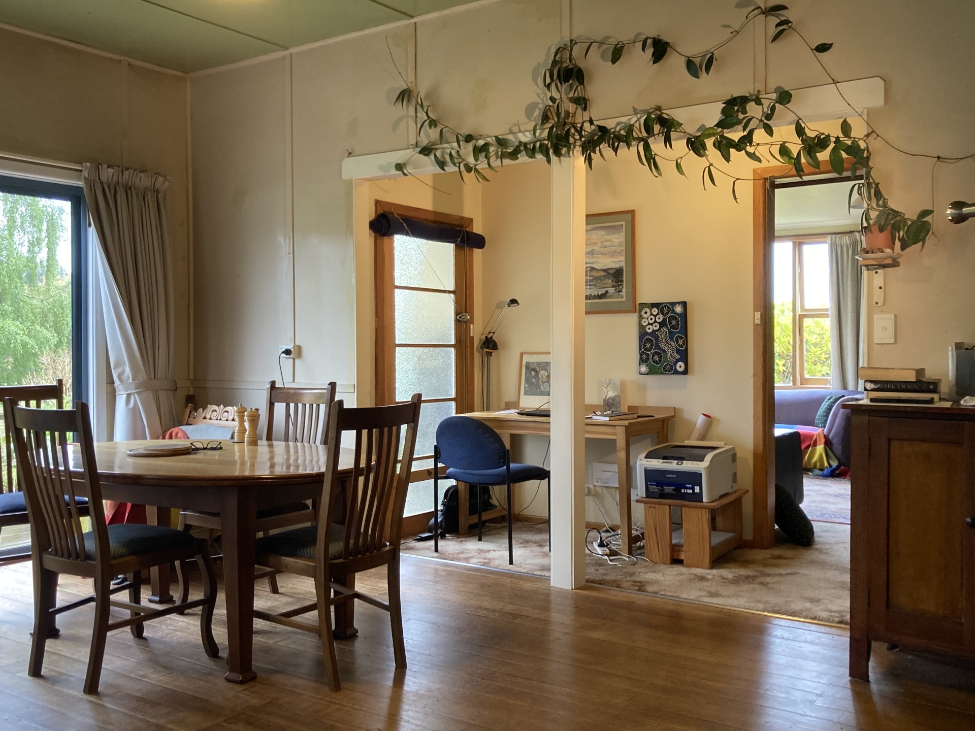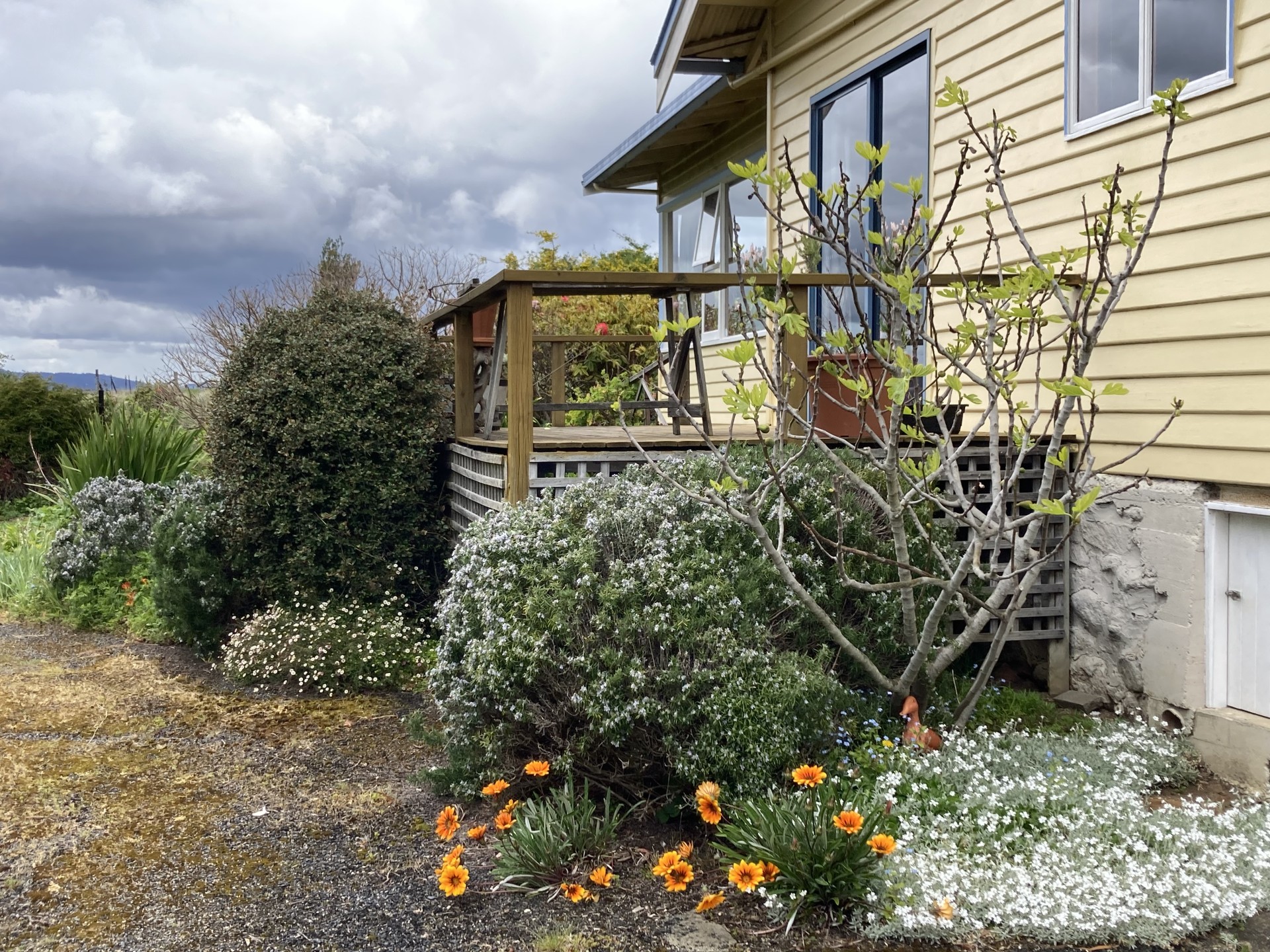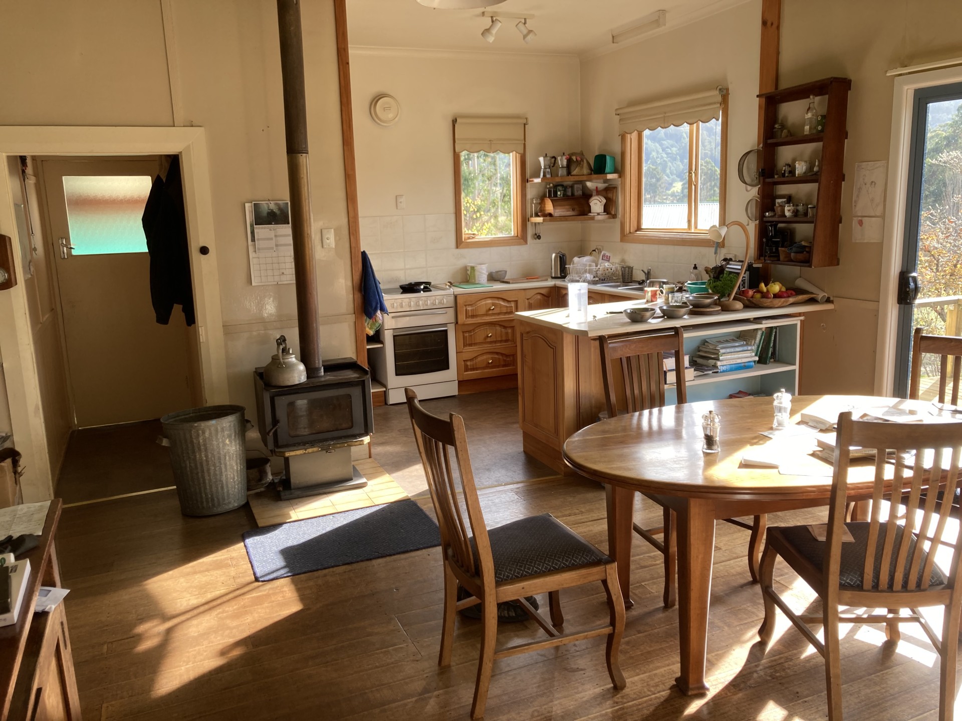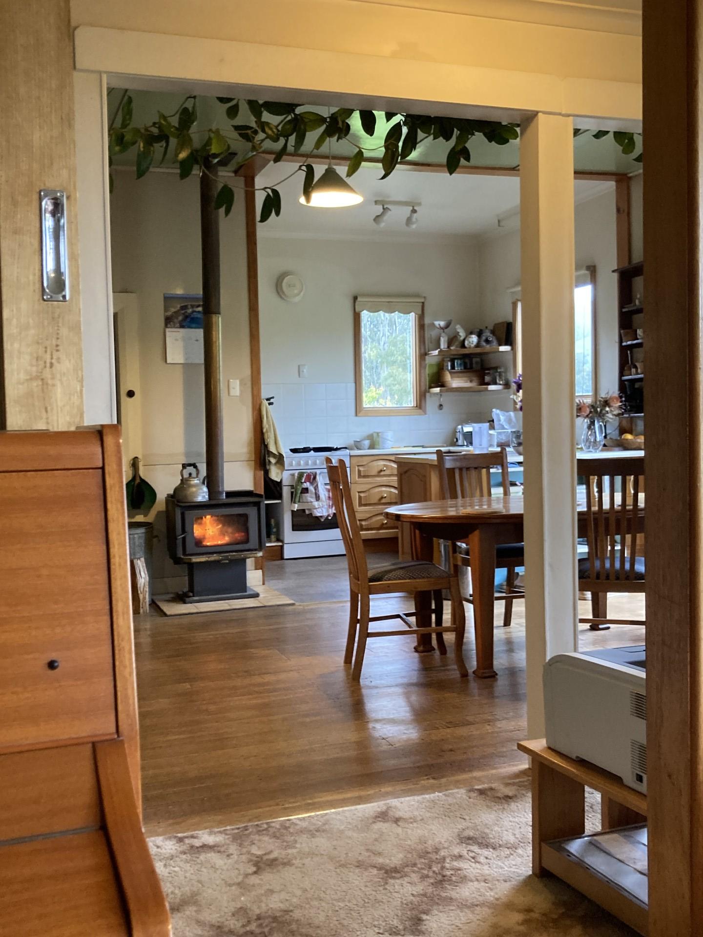 The house is approx. 140 sq. m. excluding deck, verandah, and carport. It has been extended during around 140 years to provide warm, comfortable living spaces, 3 bedrooms, a sunny deck, wood stove and underfloor heating.