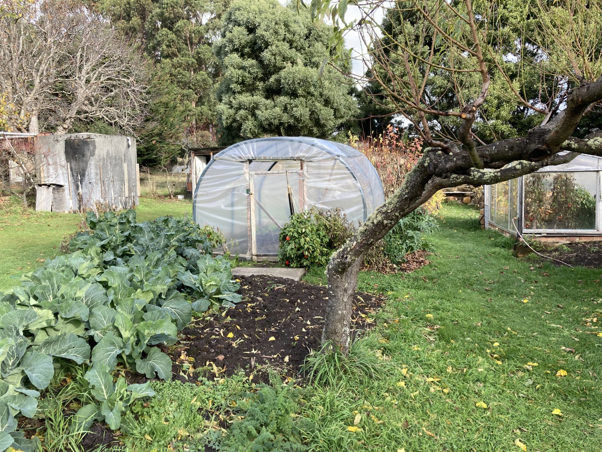 The house garden has some prolific nuts, fruits, a large vegetable patch ,greenhouse, sheds, barbeque, shade trees, shrubs, bulbs, roses.