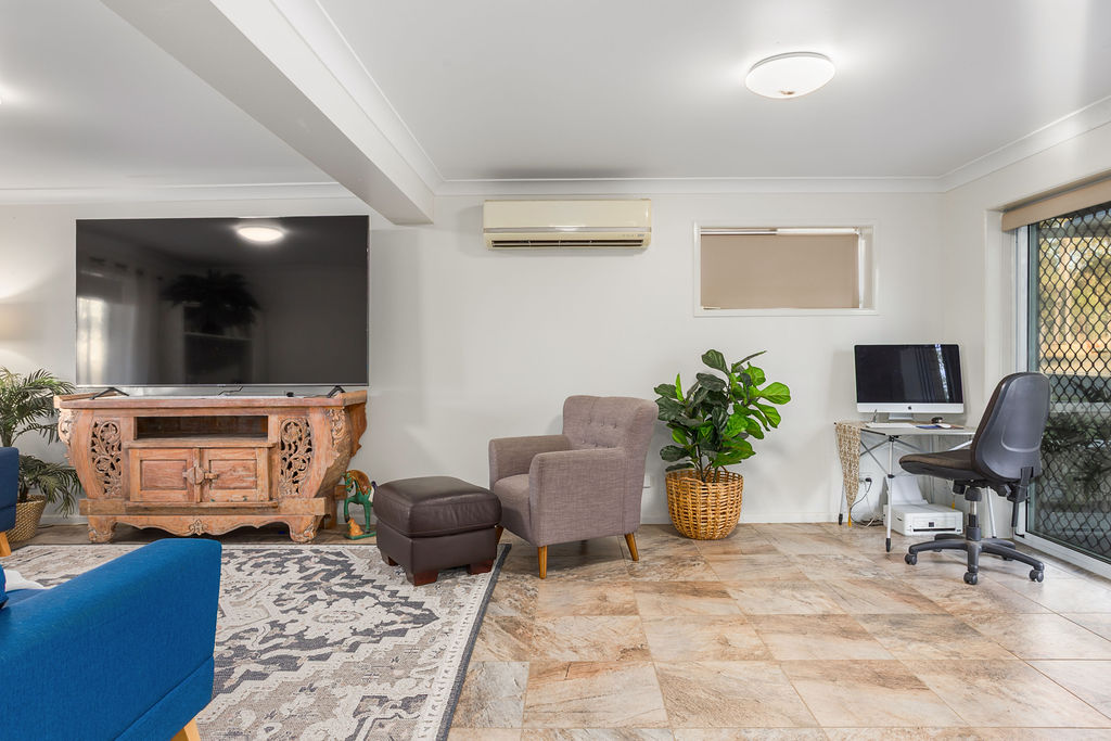 There is large and totally separate fully air conditioned lounge and dining rooms as well as an enclosed laundry with a handy third toilet and powder room on the ground floor that also services the large fully covered outdoor entertainment area.