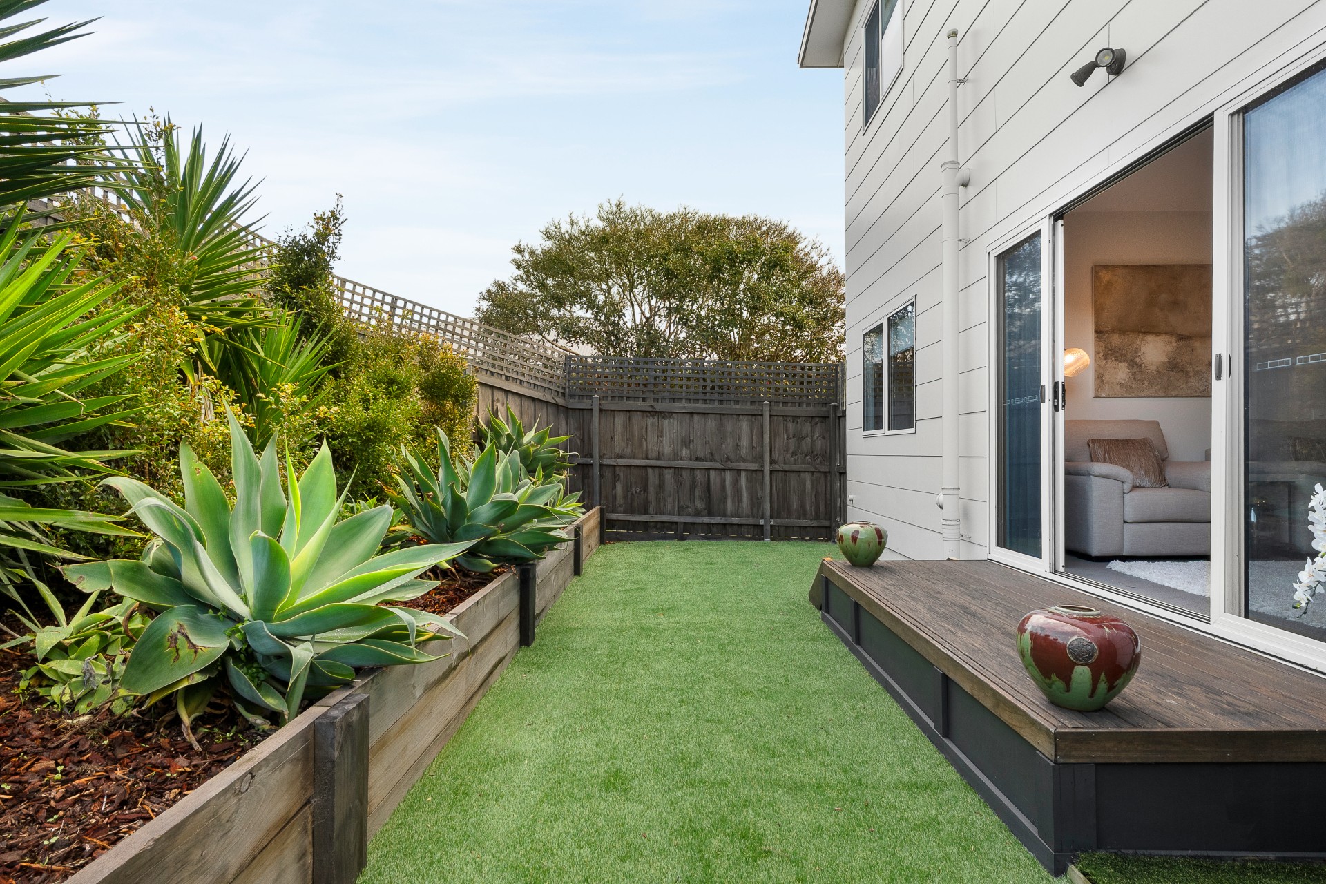 Outdoors, the landscaping is beautifully low-maintenance with a tropical aesthetic, synthetic lawn and plumbing ready for an outdoor shower or sink for keen fishers. Three alfresco zones offer spaces to host, unwind or chase the sunset, including upper and lower north-facing decks and a private backyard framed by custom screens and Blackbutt timber decking.