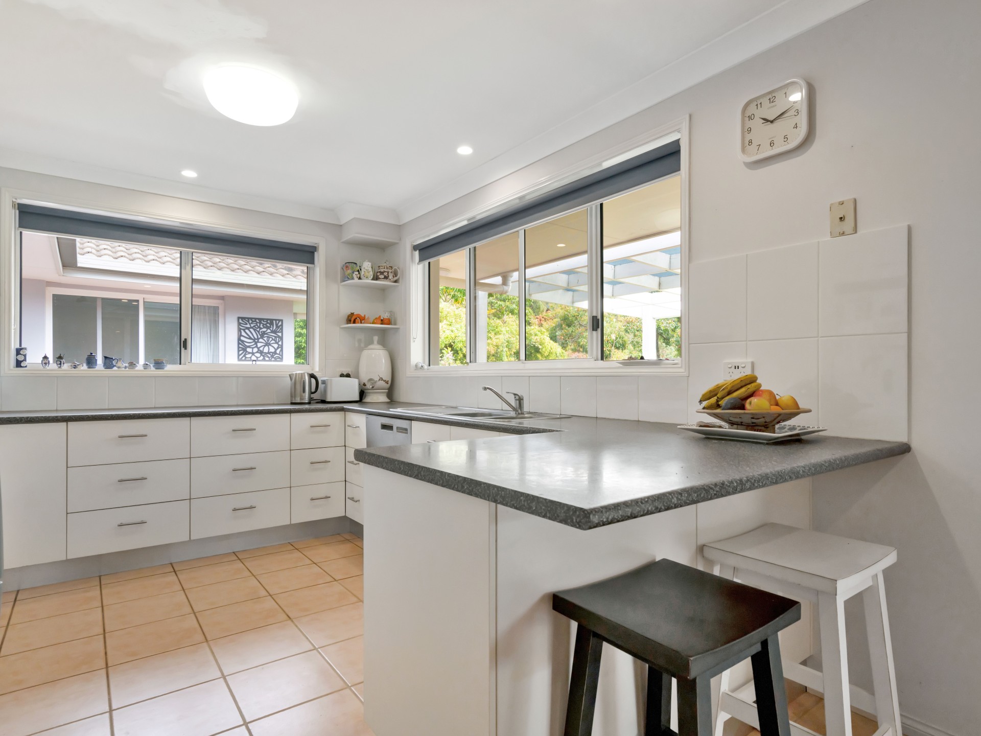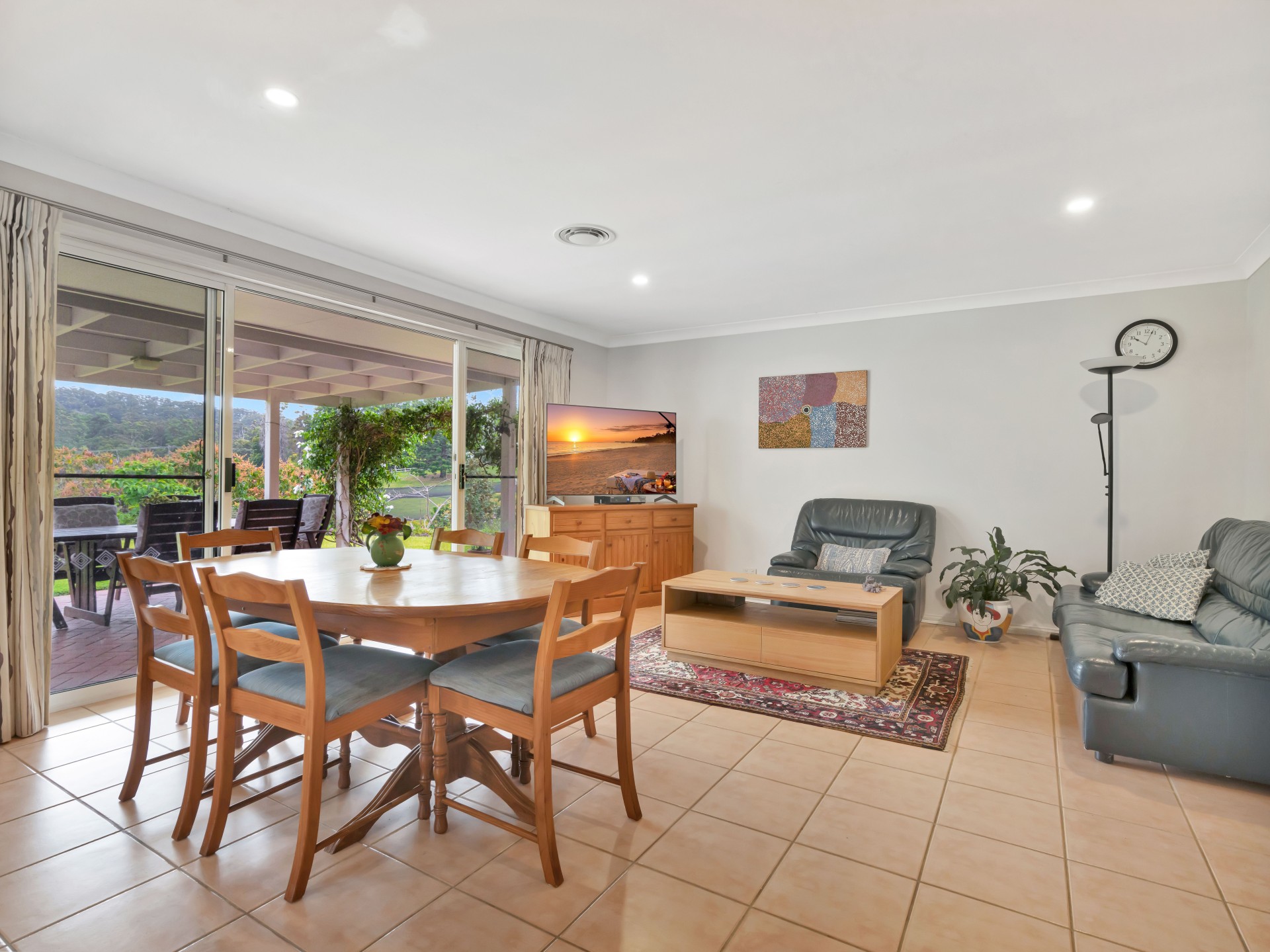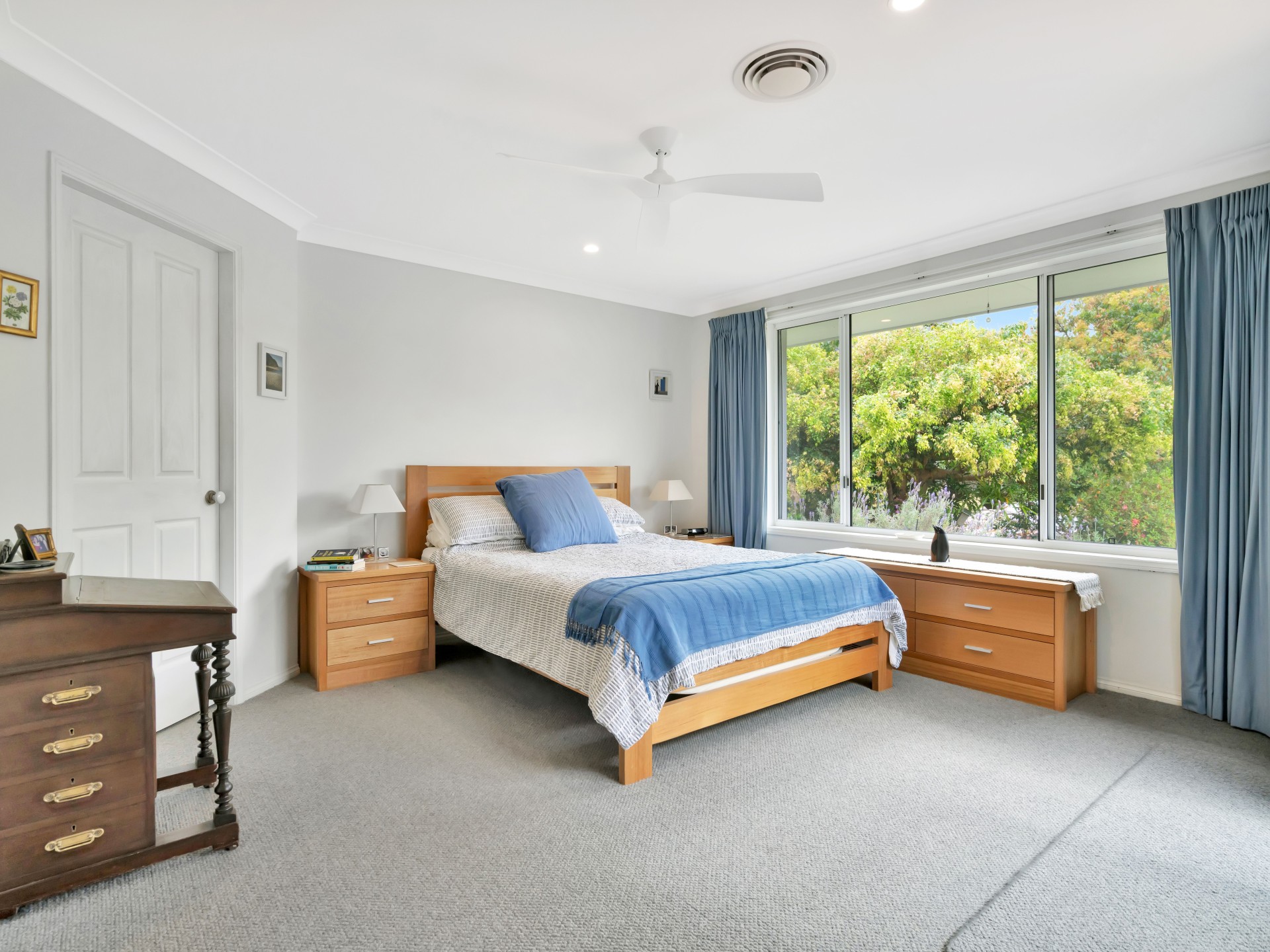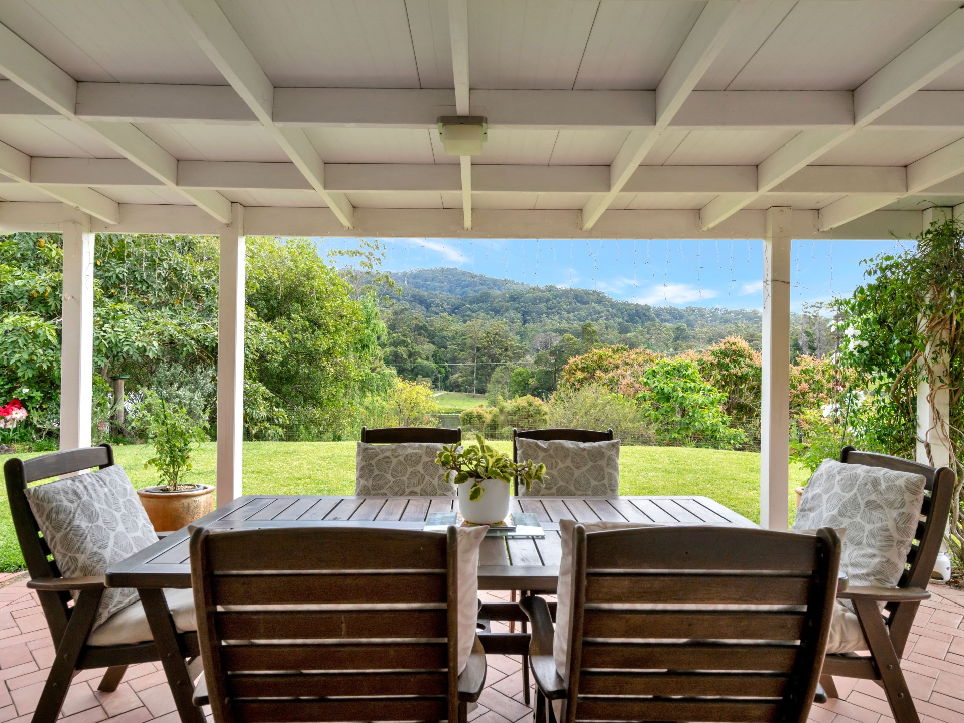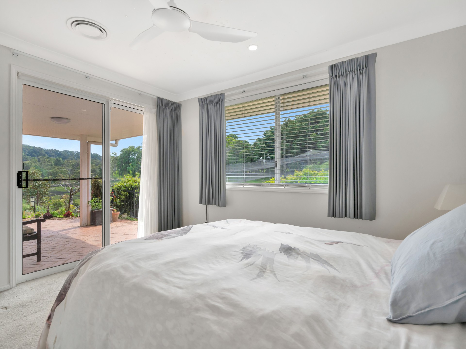The perfectly oriented, fully ducted air-conditioned 4 bedroom residence boasts peaceful and expansive views of the dam and valley bushlands, elevated in an envious frost-free spot. Four spacious bedrooms with built in wardrobes and overhead fans each enjoy garden views; three bedrooms are facing north with their own private covered patios. Parents retreat located at opposite end of the house has a private ensuite.