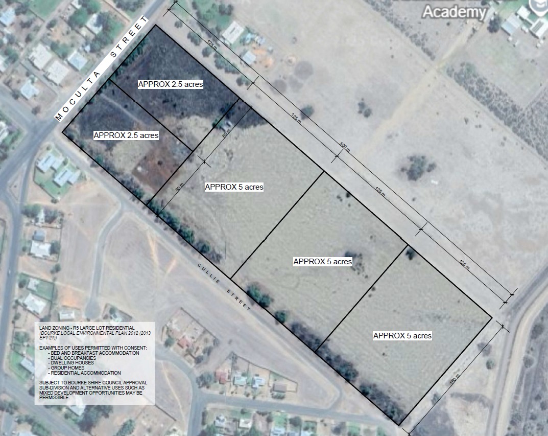 Embrace the convenience of town living with access to essential amenities, including power, water, sewer, and a reliable hard-line internet connection. The land is zoned R5 Large Lot Residential under the Bourke Local Environmental Plan 2012 (2013 EPI 21), allowing for a range of permissible accommodation uses with other development options subject to Council approval.