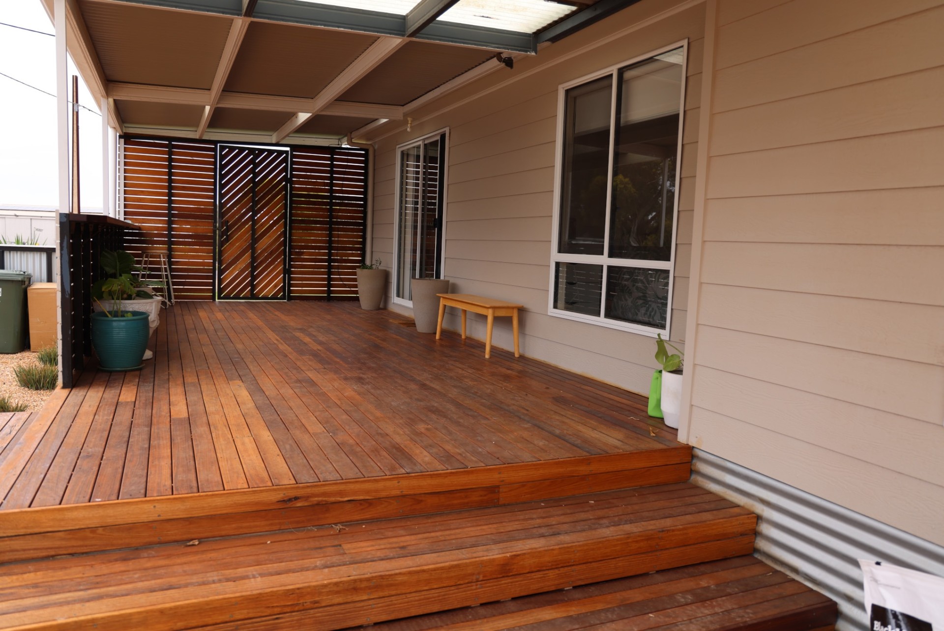 2 large rainwater tanks, 10m x 7m shed (2 bays + workshop), fully fenced, low maintenance front and back yards.