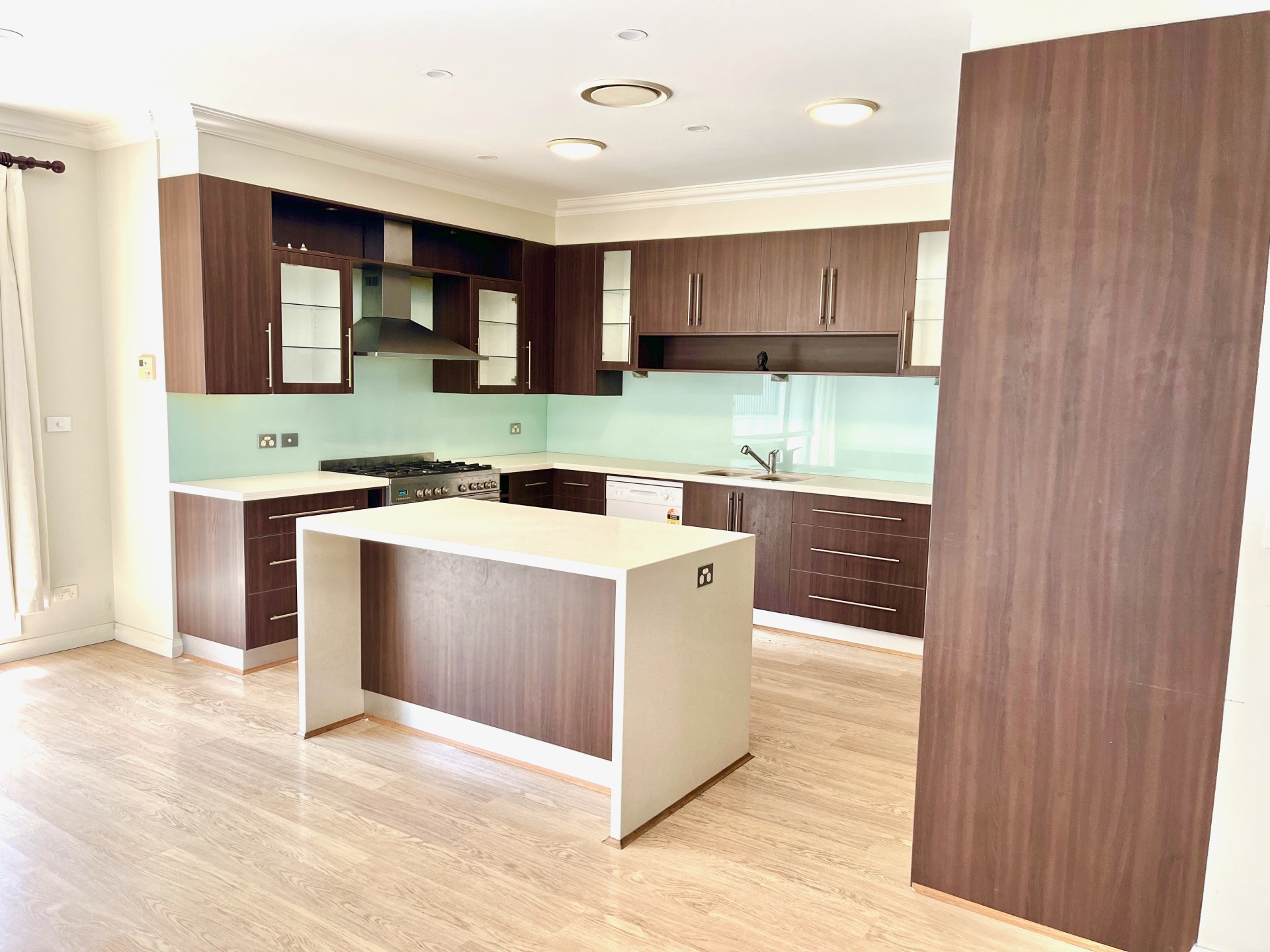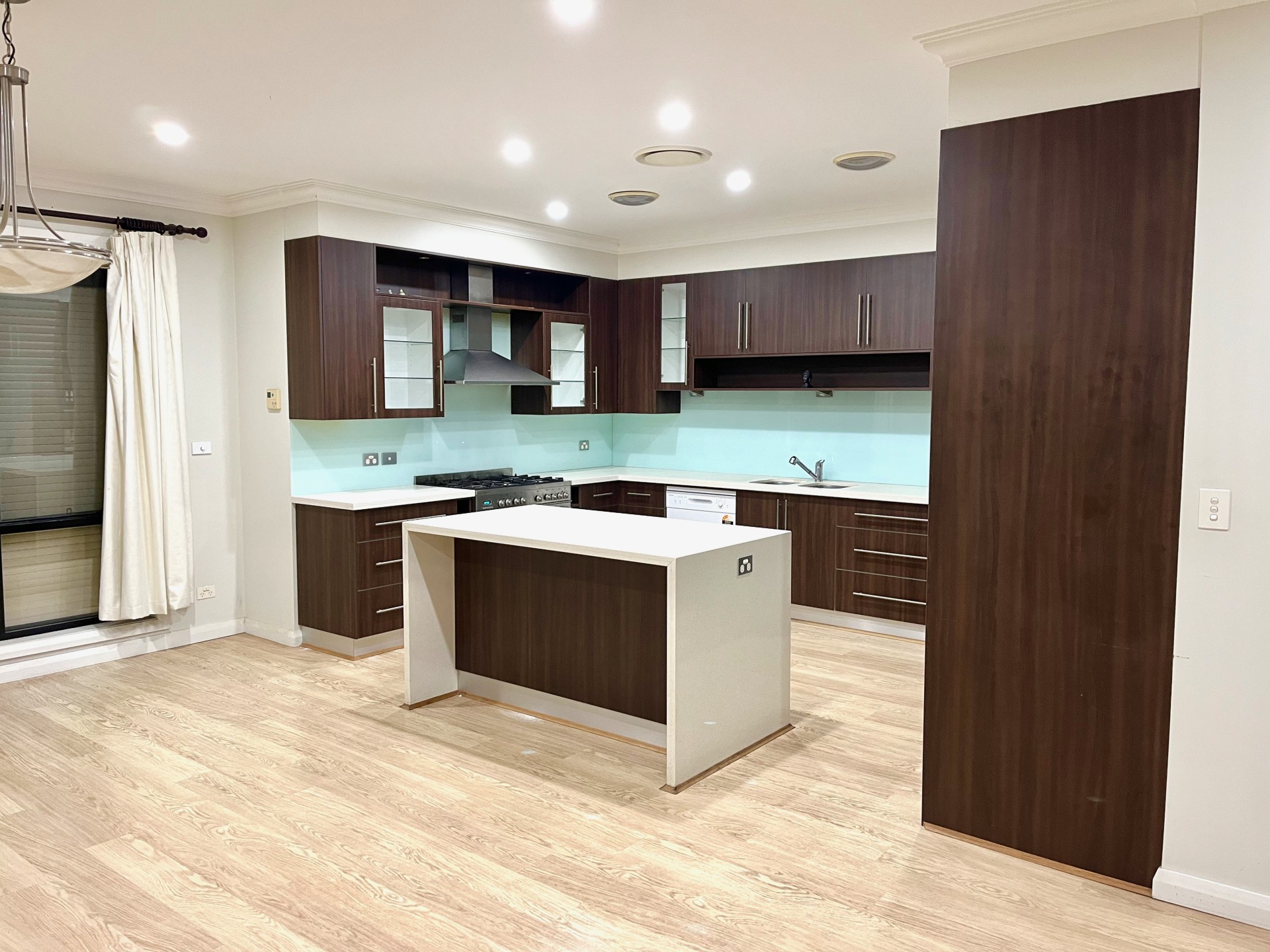 The heart of this home lies in the well-appointed kitchen, featuring stone benchtops, a sizable pantry, and ample storage and modern appliances. Skylights enhance the culinary space, making meal preparation a delightful experience.