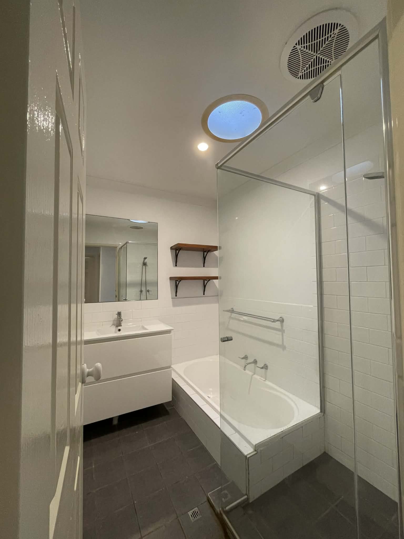 • Renovated bathroom with shower, bathtub and separate toilet.