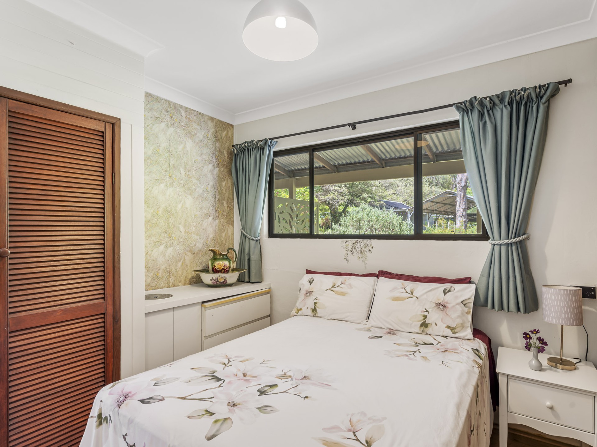 The recently renovated kitchen features Ubatuba granite benchtops, large island with breakfast bar, double sinks, smeg gas cooktop, dishwasher & dual oven. Adjoining the kitchen is a large mudroom/pantry with extensive shelving and long bench for appliances. Large windows/doors in the four bedrooms keep you connected to the beauty outside and bring light and breezes. There are two bathrooms- one featuring flush toilet and shower whilst the second has a bath/shower and sink- plus a separate clivus multrum composting toilet. The property also features a triple carport/shed, a free standing shelter for boat/caravan plus a huge area of additional car space, storage and workshop under the house.