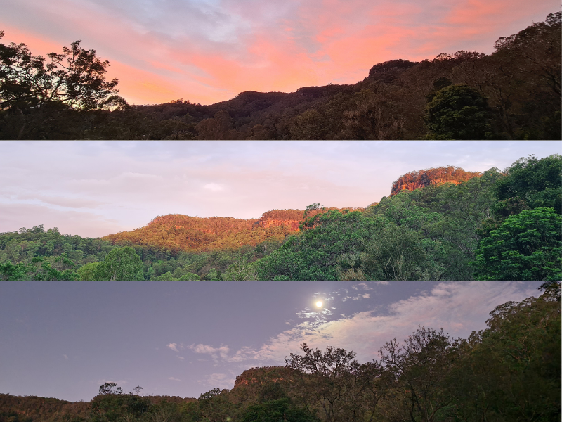 -Extensive views from house, pool and gardens- mature trees and forested hills near and far with the scenic Billen cliffs a feature. More extensive views to McKellar range in the west and the Border Ranges in the north.