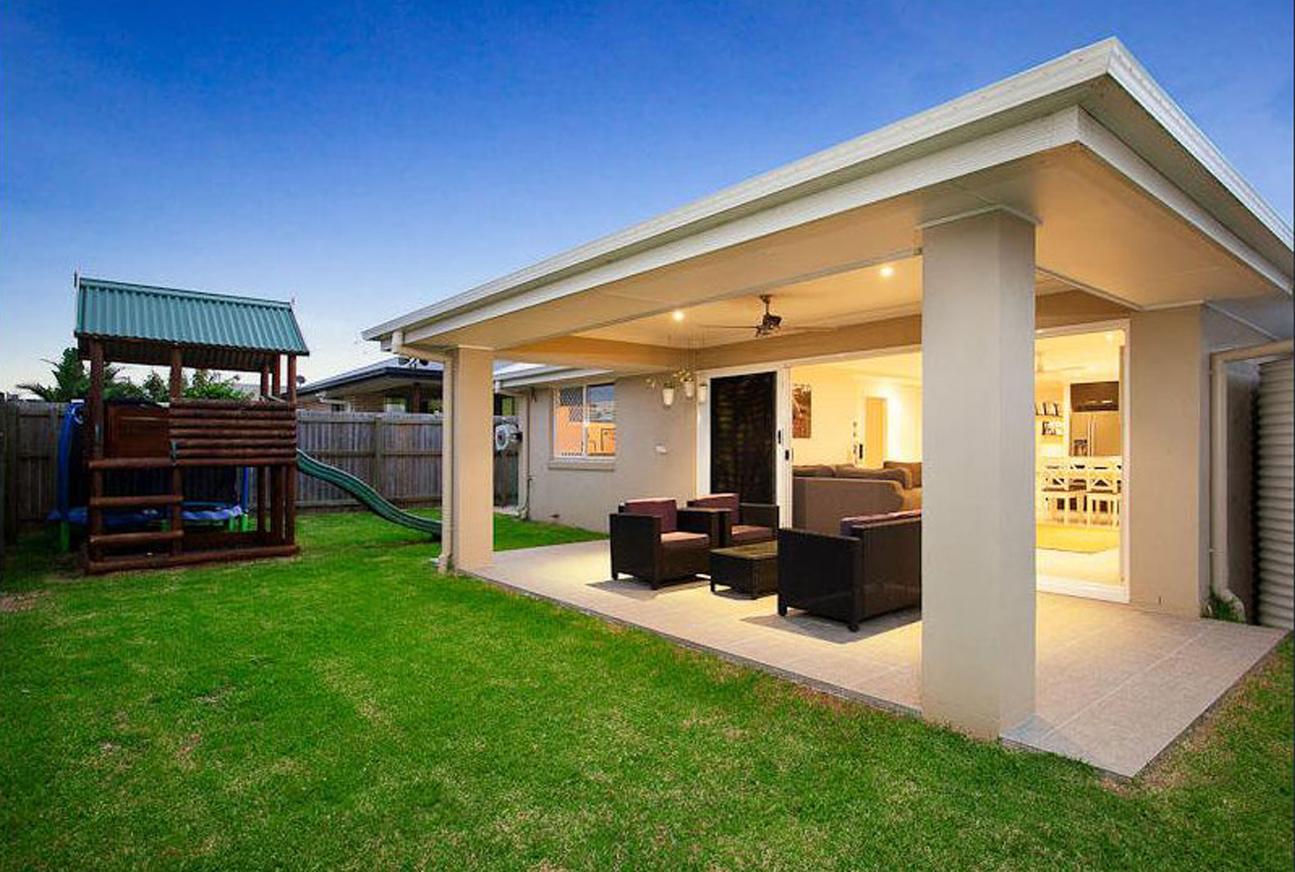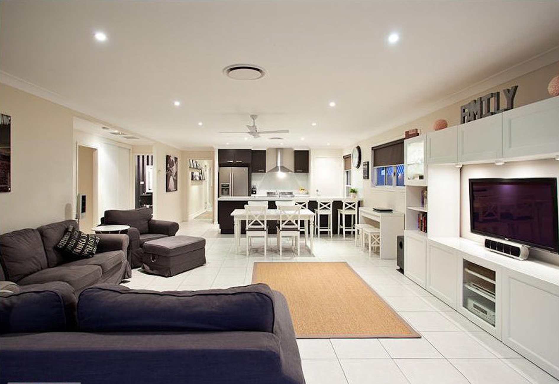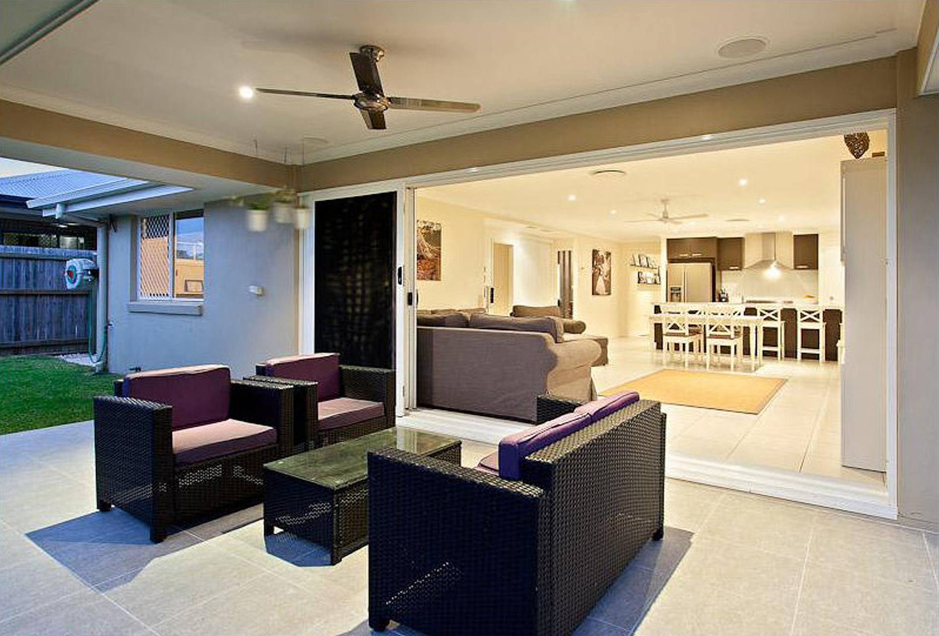 A central dining room provides a great focal point for even the busiest of families and friends to come together, or make the most of outside under the alfresco- with the fan keeping things cool.