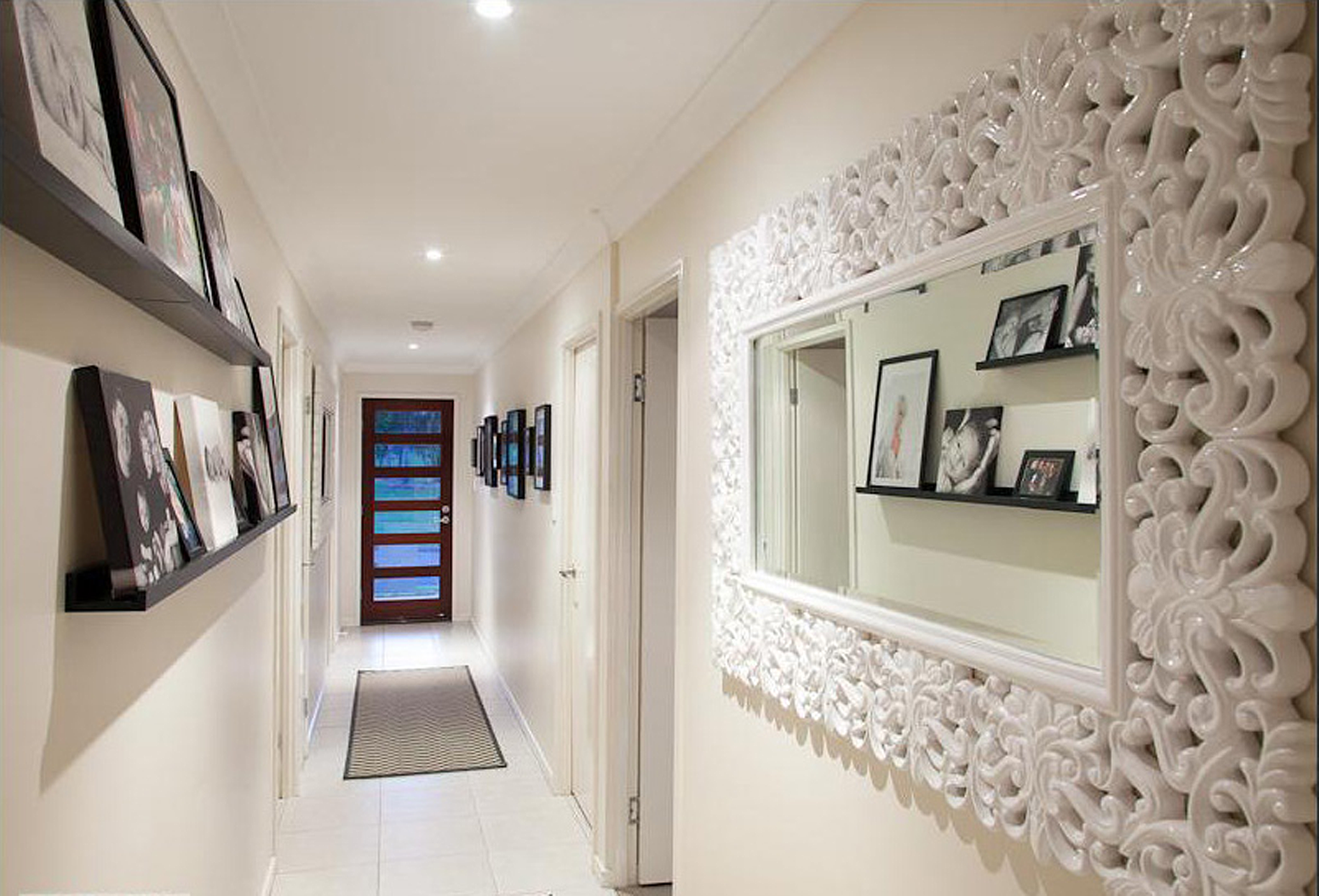And as you come inside, a gallery opens before you and gives the sense of style and space, allowing for a photo or art work collection to be displayed.