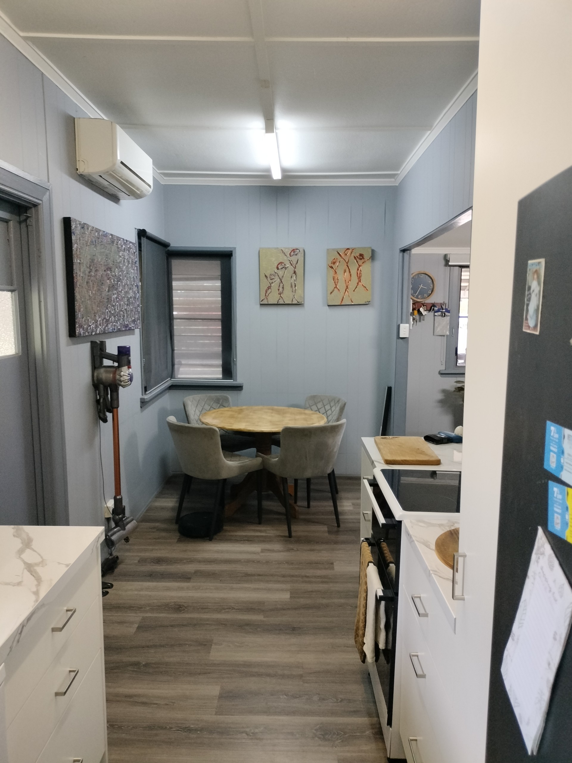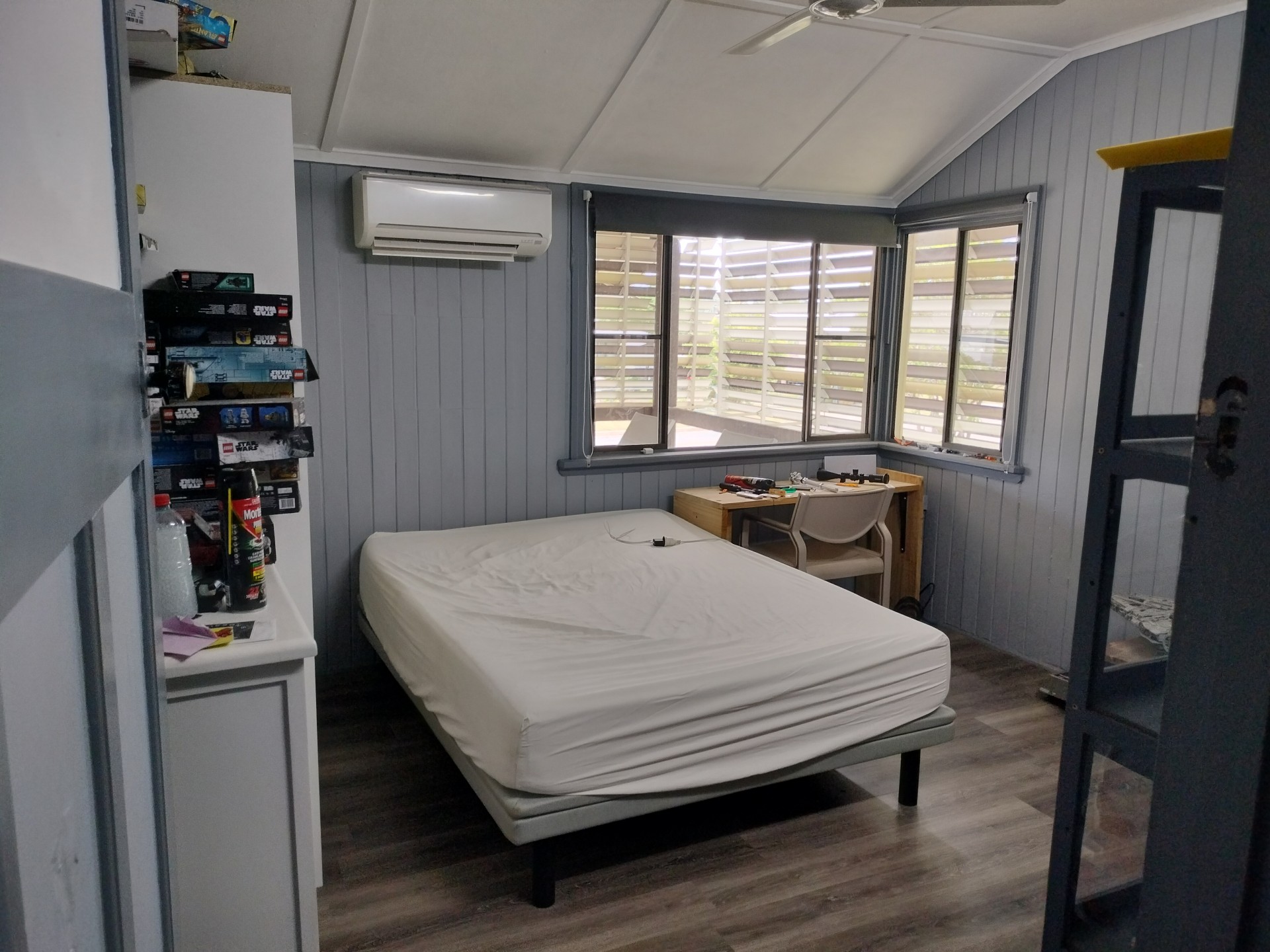 Upon entering, you are greeted by a light-filled living space that exudes warmth and character. Fully air-conditioned for year-round comfort, the interior is complemented by ceiling fans throughout, enhancing ventilation and creating a pleasant ambiance. The two main bedrooms feature built-in wardrobes, providing ample storage solutions without compromising on style.